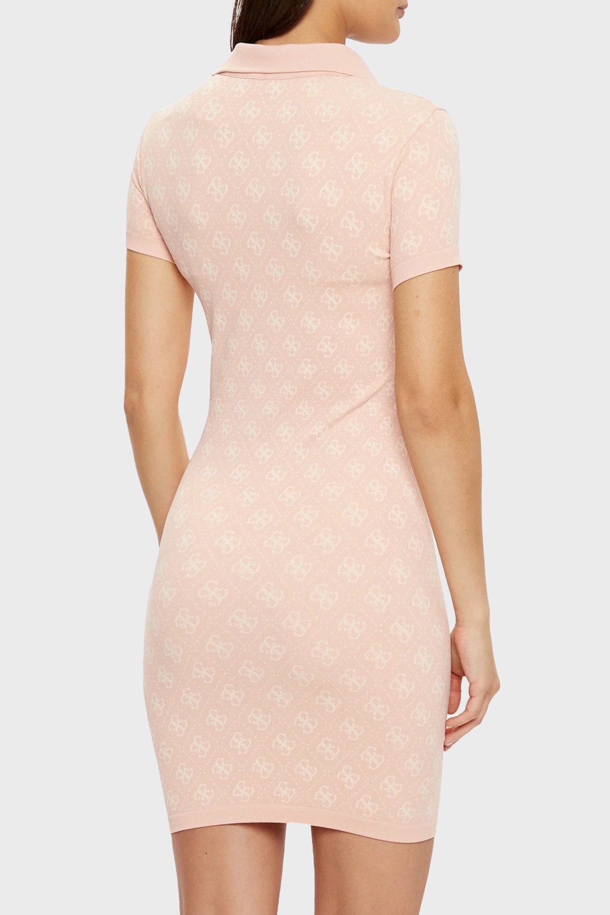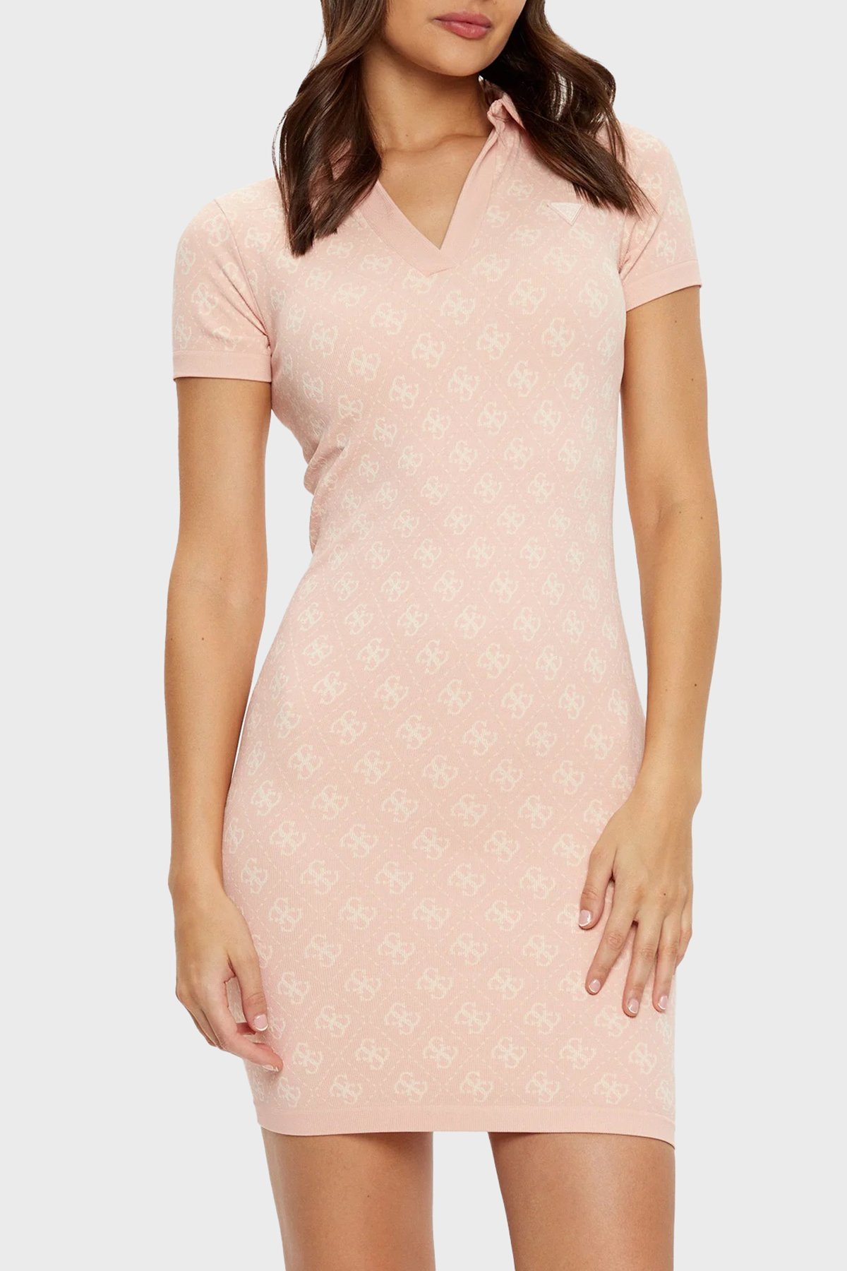4G Rhombus Slim Fit Polo Yaka Tamamı 4G Logolu Mini V5RK02Z3LF0 Bayan Elbise V5RK02 Z3LF0 F6DJ PEMBE