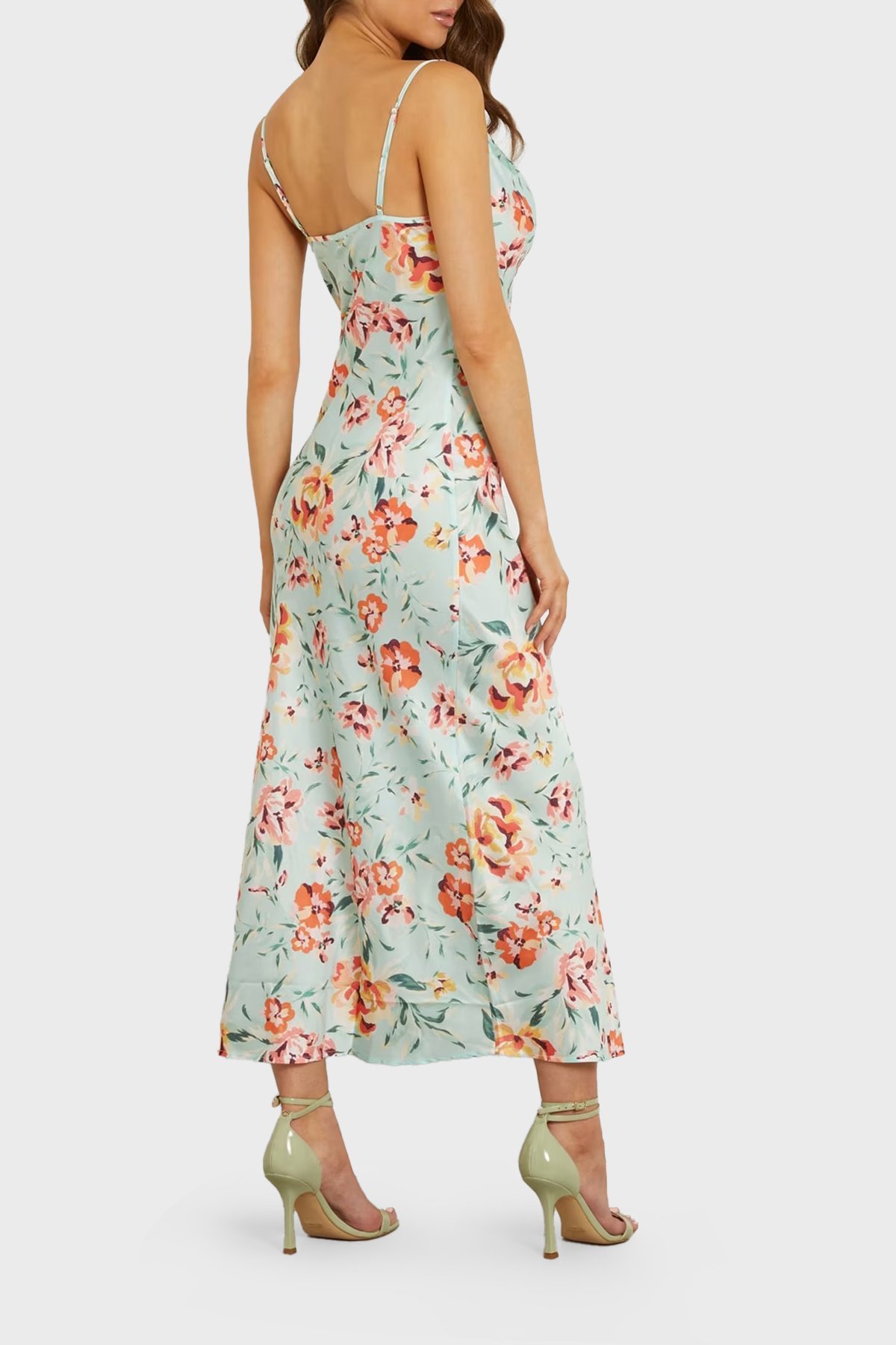 Akilina Slim Fit İp Askılı Uzun Saten W3GK85WD8G2 Bayan Elbise W3GK85 WD8G2 P7NG YEŞİL