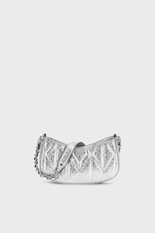 Aldina Jakarlı Logo Baskılı Zincir Askılı Mini HWGY9663170 Bayan Çanta HWGY96 63170 SIL GÜMÜŞ