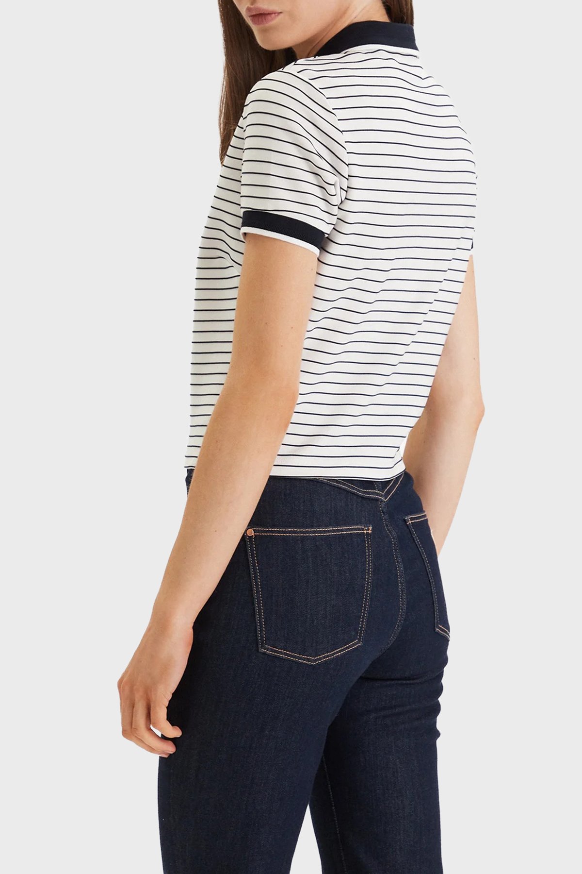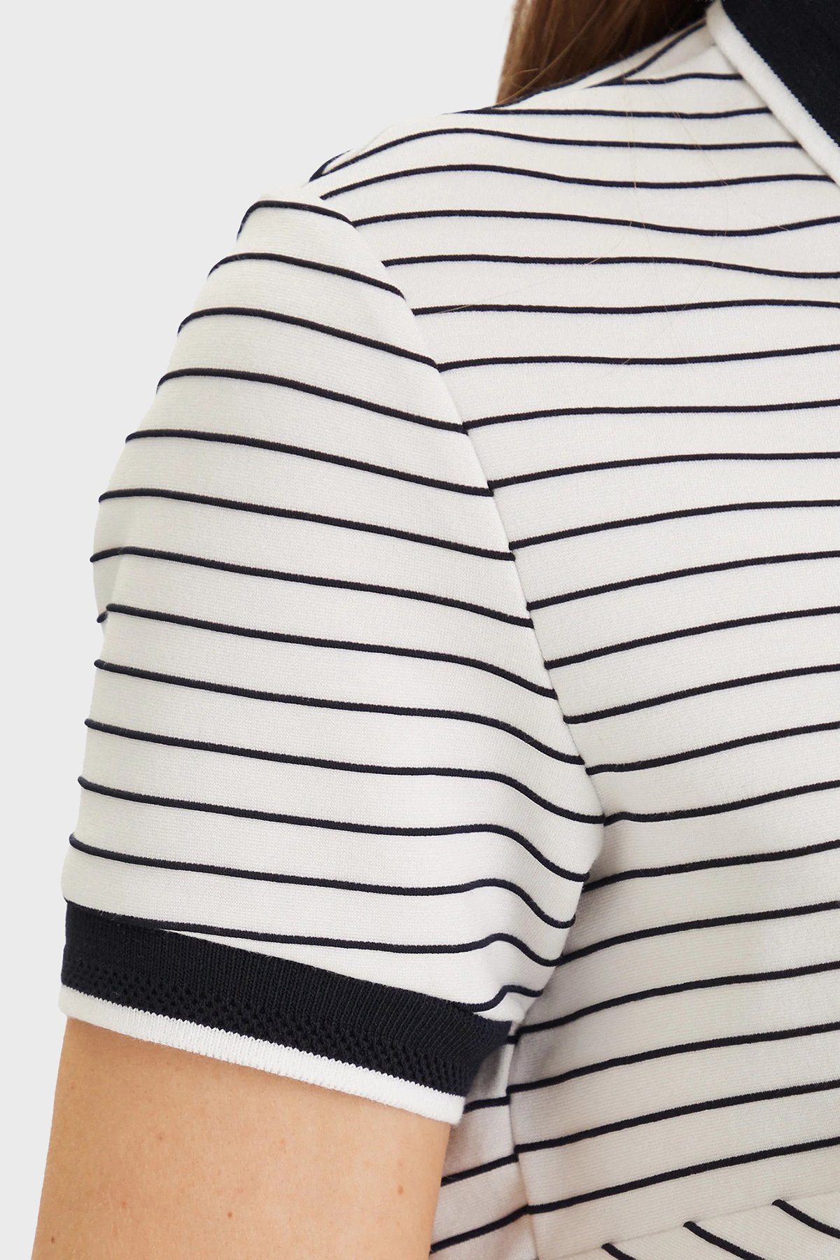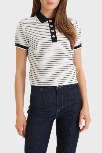 Alphonsin Çizgili Slim Fit Düğmeli Polo W6GP17 K2946 Bayan T Shirt W6GP17 K2946 S0AK BEYAZ-SİYAH