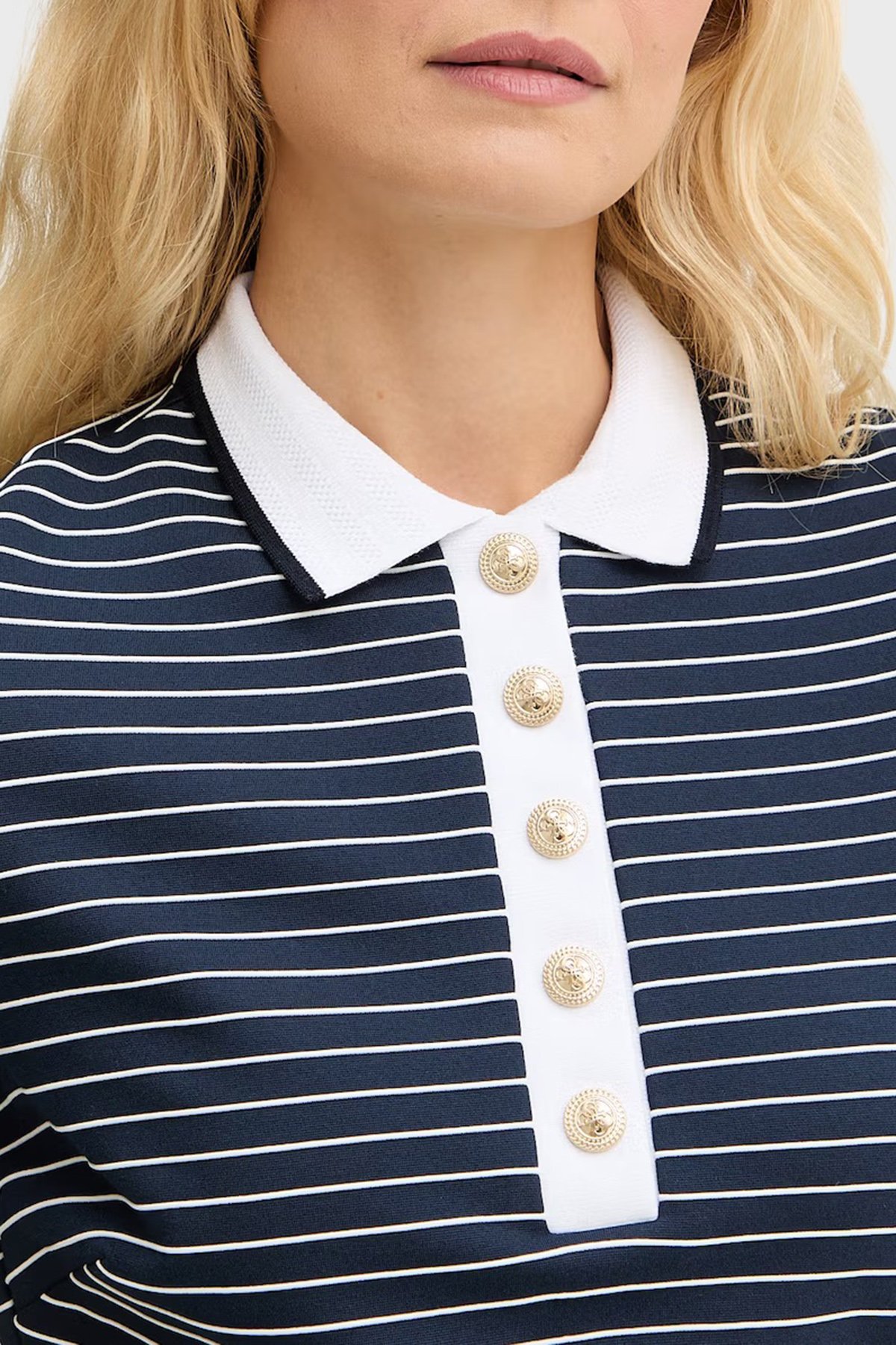 Alphonsin Slim Fit Çizgili Düğmeli Polo Yaka W6GK14K2948 Bayan Elbise W6GK14 K2948 SB09 LACİVERT