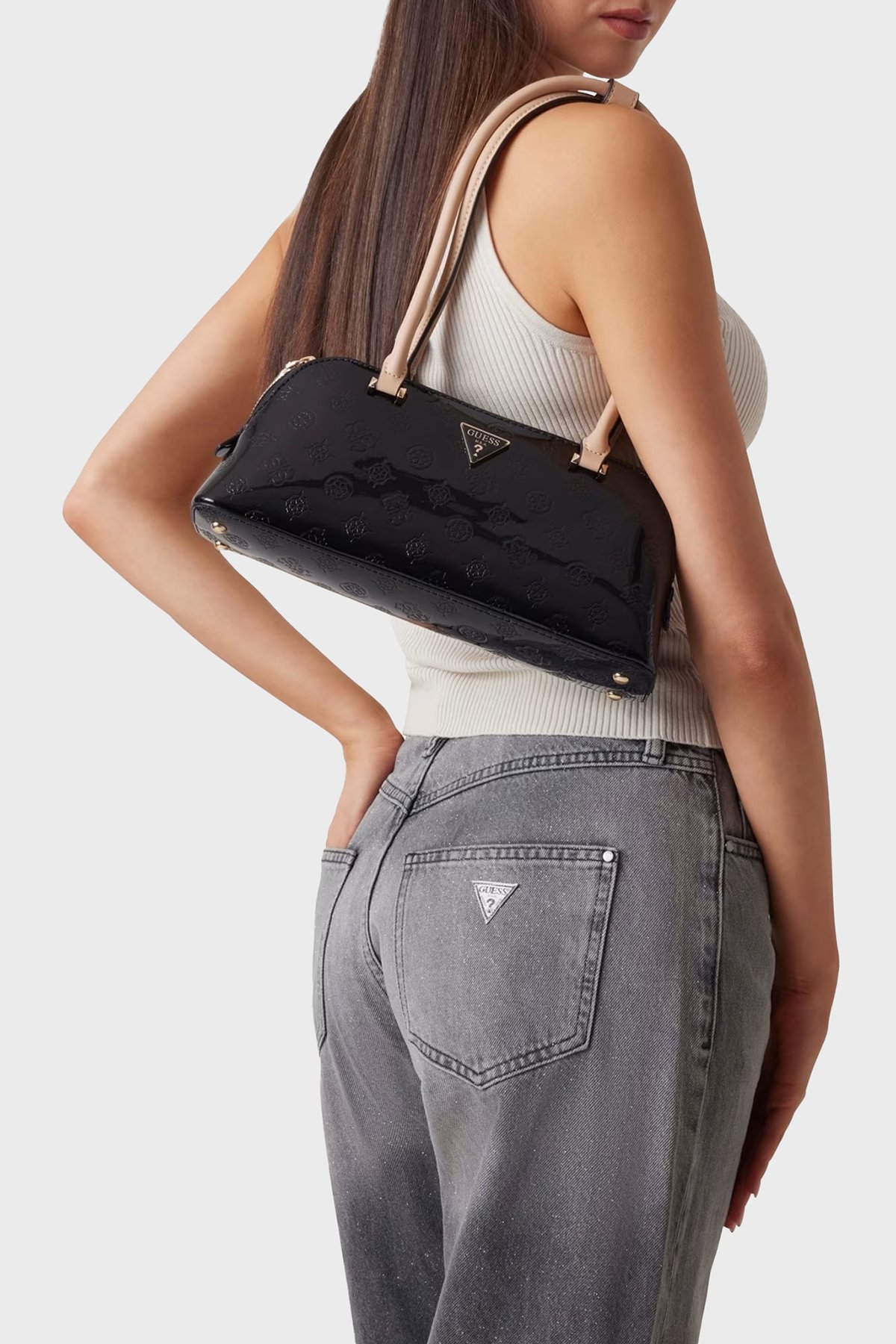 Arnela 4G Logolu Omuz Askılı Rugan HWTV9496080 Bayan Çanta HWTV94 96080 BLO SİYAH