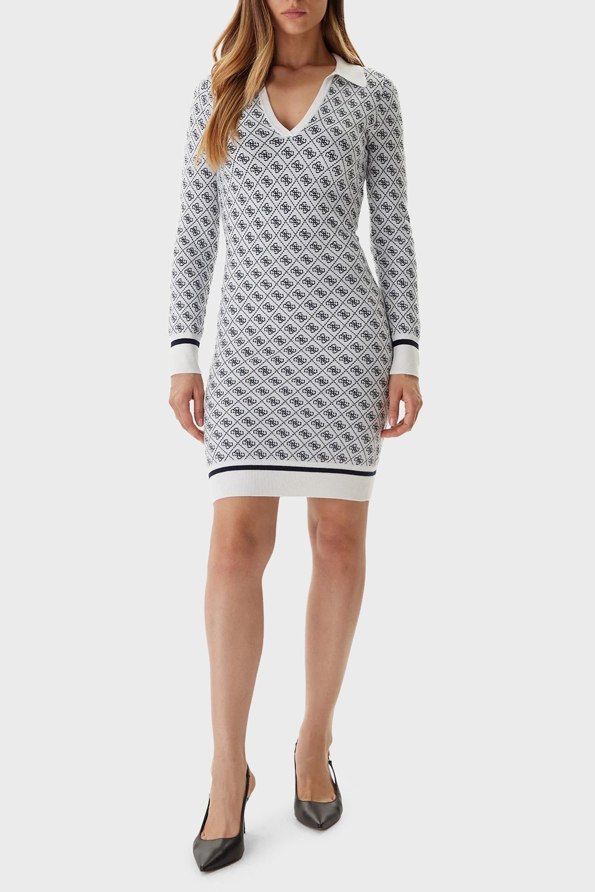 Aubrey Yün Karışımlı Logolu Slim Fit V Yaka Mini W5BK25Z3JD2 Bayan Elbise W5BK25 Z3JD2 F0YU BEYAZ
