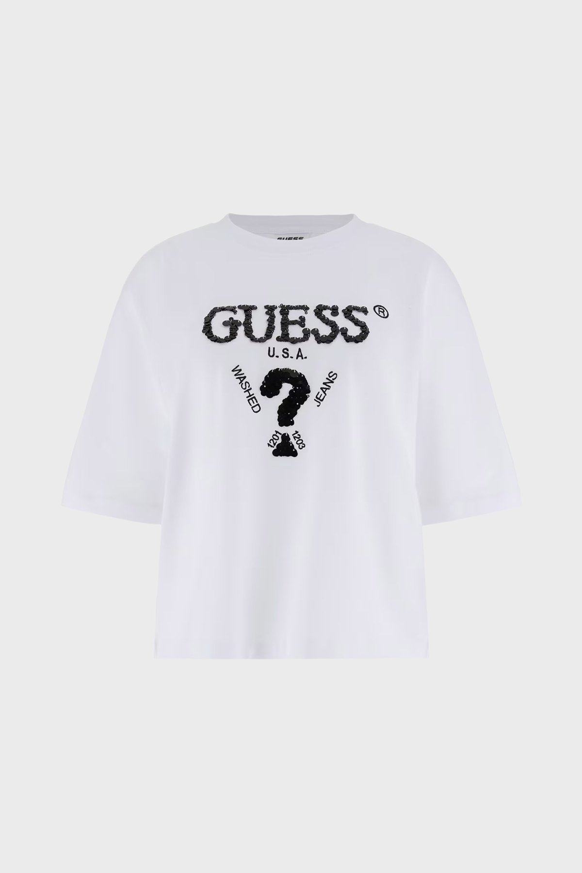 Aurelie Pamuklu Payetli Relaxed Fit Bisiklet Yaka V4YI06I3Z14 Bayan T Shirt V4YI06 I3Z14 G011 BEYAZ