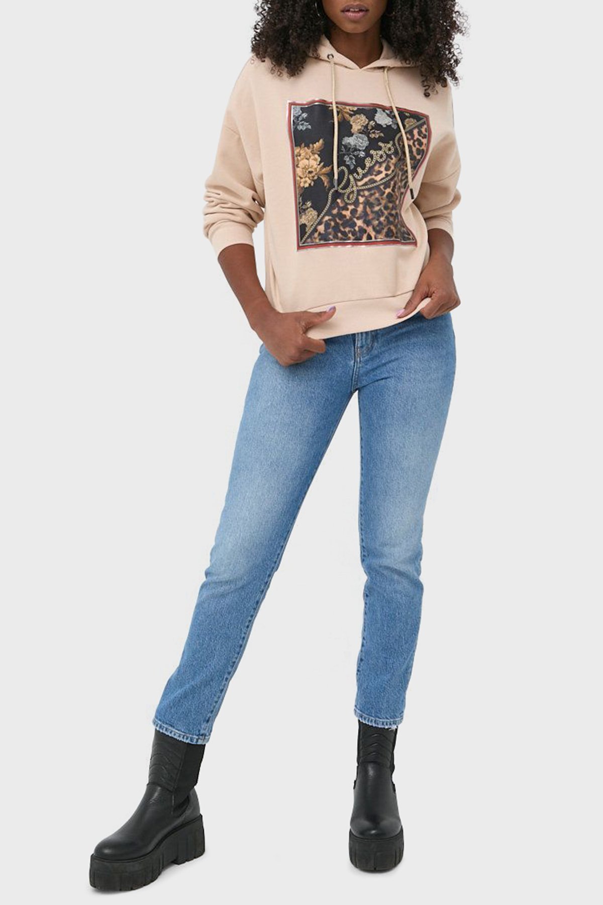 Baskılı Kapüşonlu Regular Fit Pamuklu Zenovia Bayan Sweat W2BQ10K9YH1 G133 BEJ
