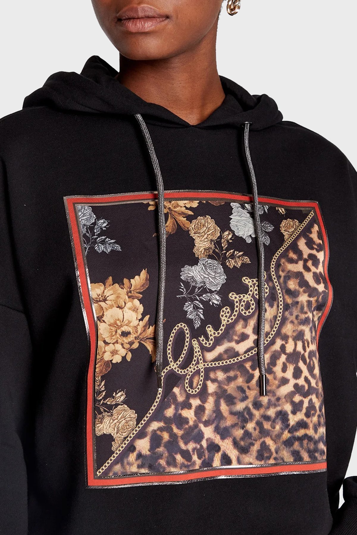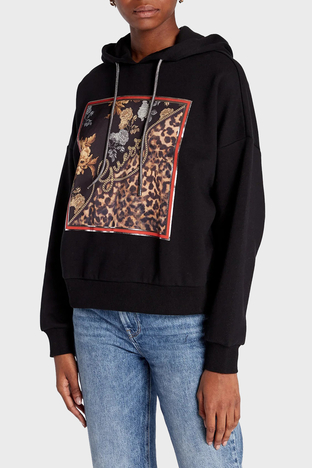 Baskılı Kapüşonlu Regular Fit Pamuklu Zenovia Bayan Sweat W2BQ10K9YH1 JBLK SİYAH