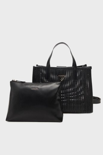 Brigitta Logolu Çıkarılabilir Askılı Dokuma HWWZ7206230 Bayan Çanta HWWZ72 06230 BLA SİYAH