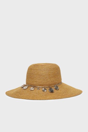 Brim Metal Charmlı Hasır Bayan Şapka AW5290 NYL01 NAT AÇIK KAHVE