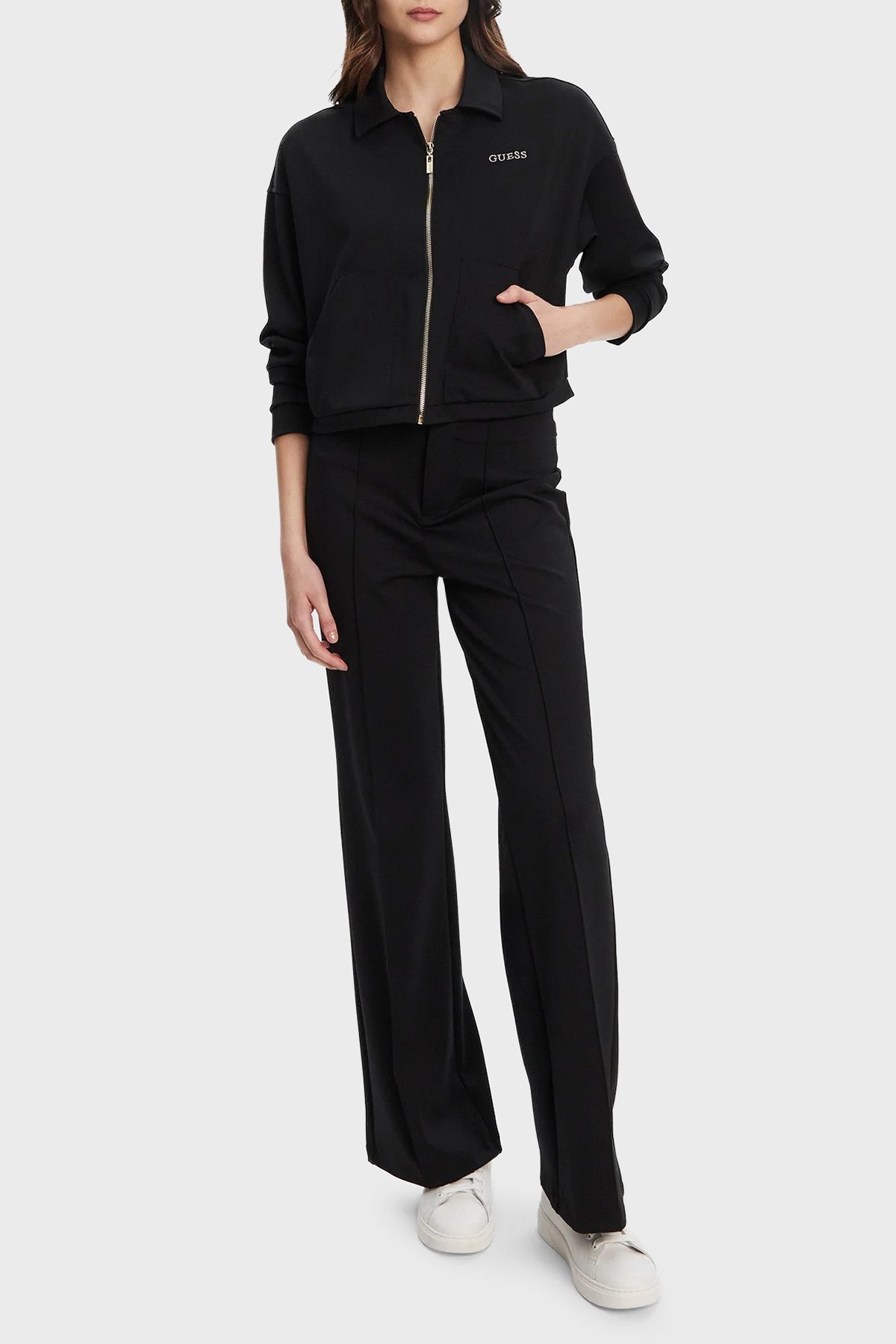 Carla Logolu Regular Fit Klasik Yaka Crop V5YL08KCX42 Bayan Ceket V5YL08 KCX42 JBLK SİYAH