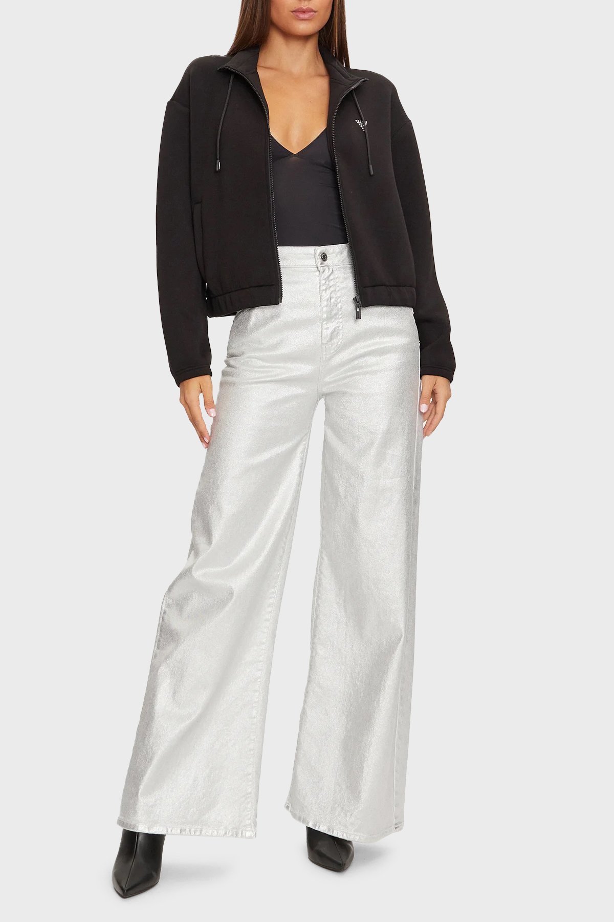 Ceilia Regular Fit Dik Yaka Fermuarlı Arkası Taşlı Logolu V4BQ14K7UW2 Bayan Sweat V4BQ14 K7UW2 JBLK SİYAH