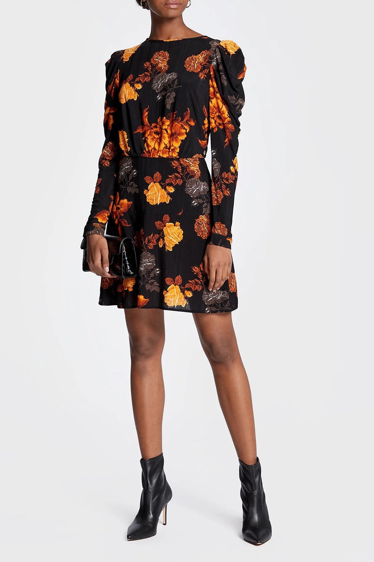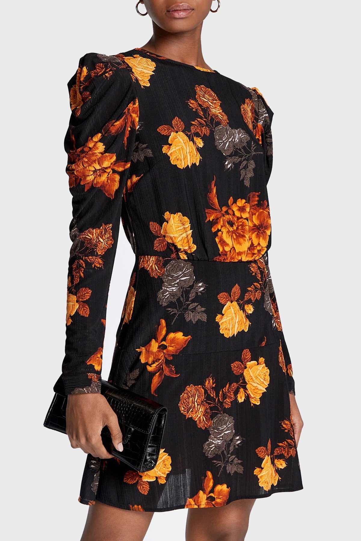 Çiçek Baskılı Kol Detaylı Şifon Bernadette Bayan Elbise W2BK42 KBDQ0 P9MT SİYAH