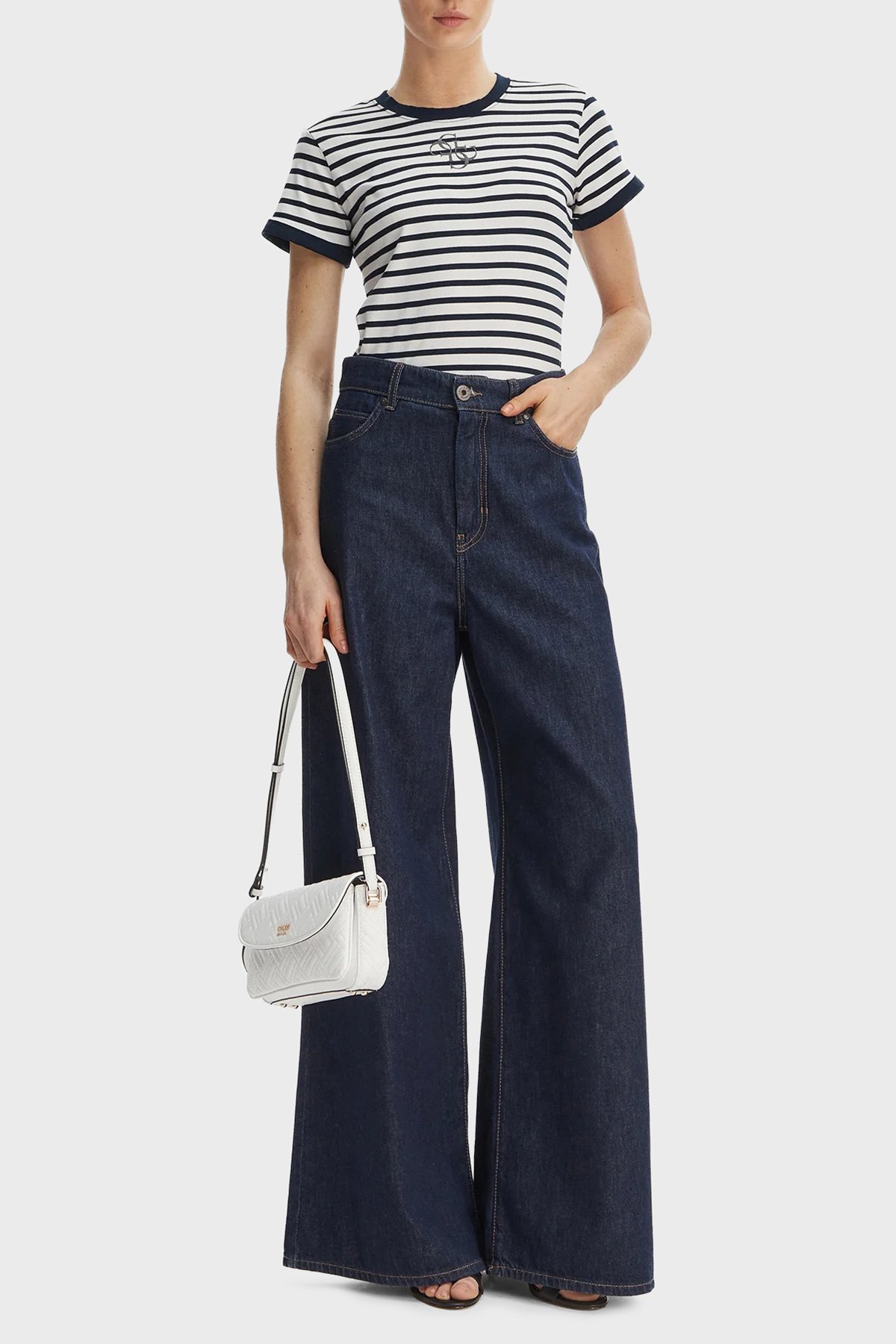 Çizgili Slim Fit Bisiklet Yaka W6GI18K3040 Kadın T Shirt W6GI18 K3040 SM1L SİYAH BEYAZ