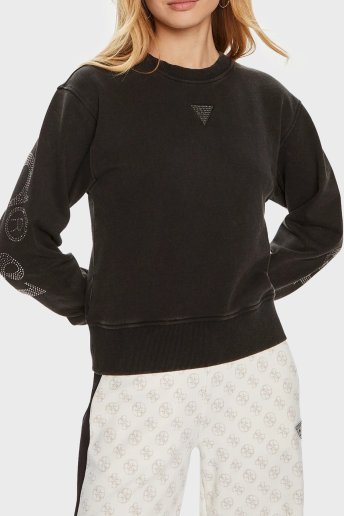 Cn Big % 100 Pamuk Regular Fit Bisiklet Yaka Taşlı W4YQ17KC8I0 Bayan Sweat W4YQ17 KC8I0 JBLK SİYAH
