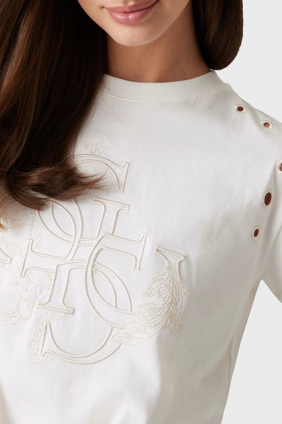 Cn Ss Eyelet Pamuklu Boxy Fit 4G Logolu Crop W5GI18I3Z14 Bayan T Shirt W5GI18 I3Z14 G012 EKRU