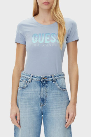 Cn Ss Glitter Pamuklu Taşlı Logo Slim Fit Bisiklet Yaka W5GI14J1314 Bayan T Shirt W5GI14 J1314 A70Q AÇIK MAVİ