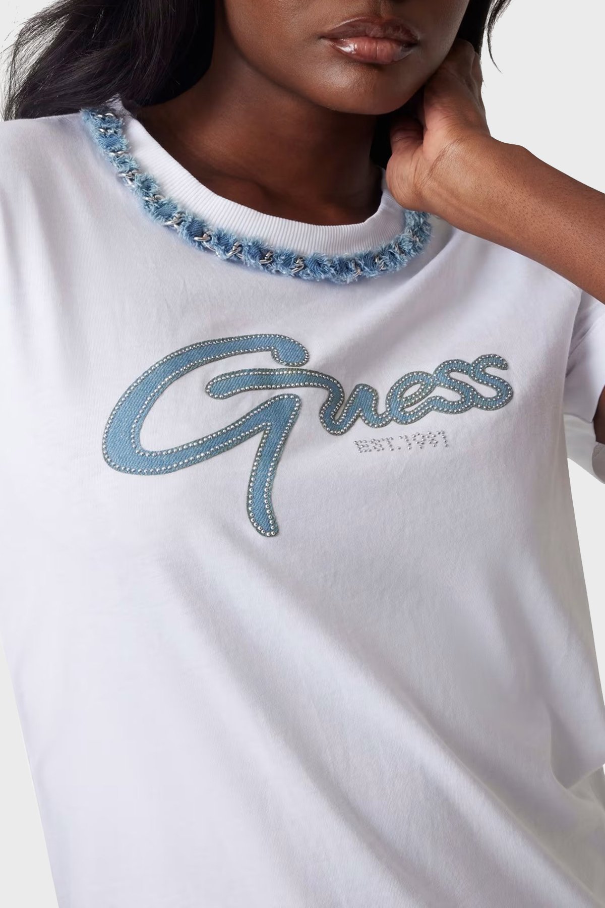 Cn Ss Jeans Pamuklu Regular Fit Zincir Detaylı W5GI03I3Z14 Bayan T Shirt W5GI03 I3Z14 G011 BEYAZ