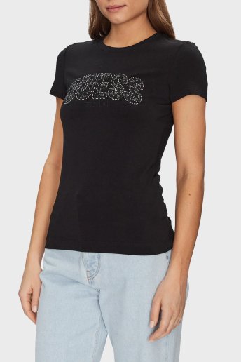 Cn Ss Logo Streç Pamuklu Slim Fit Bisiklet Yaka W5GI04J1314 Bayan T Shirt W5GI04 J1314 JBLK SİYAH