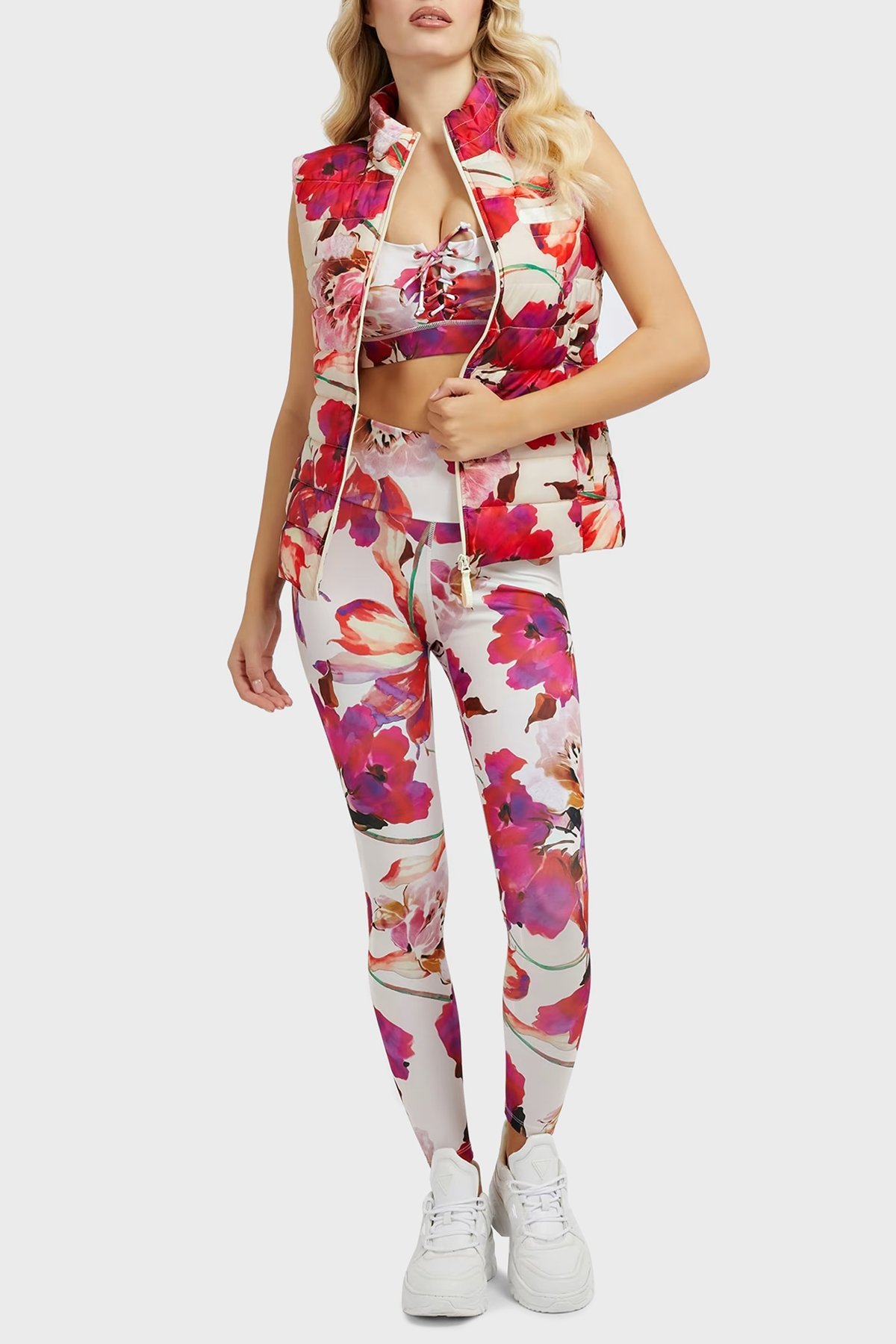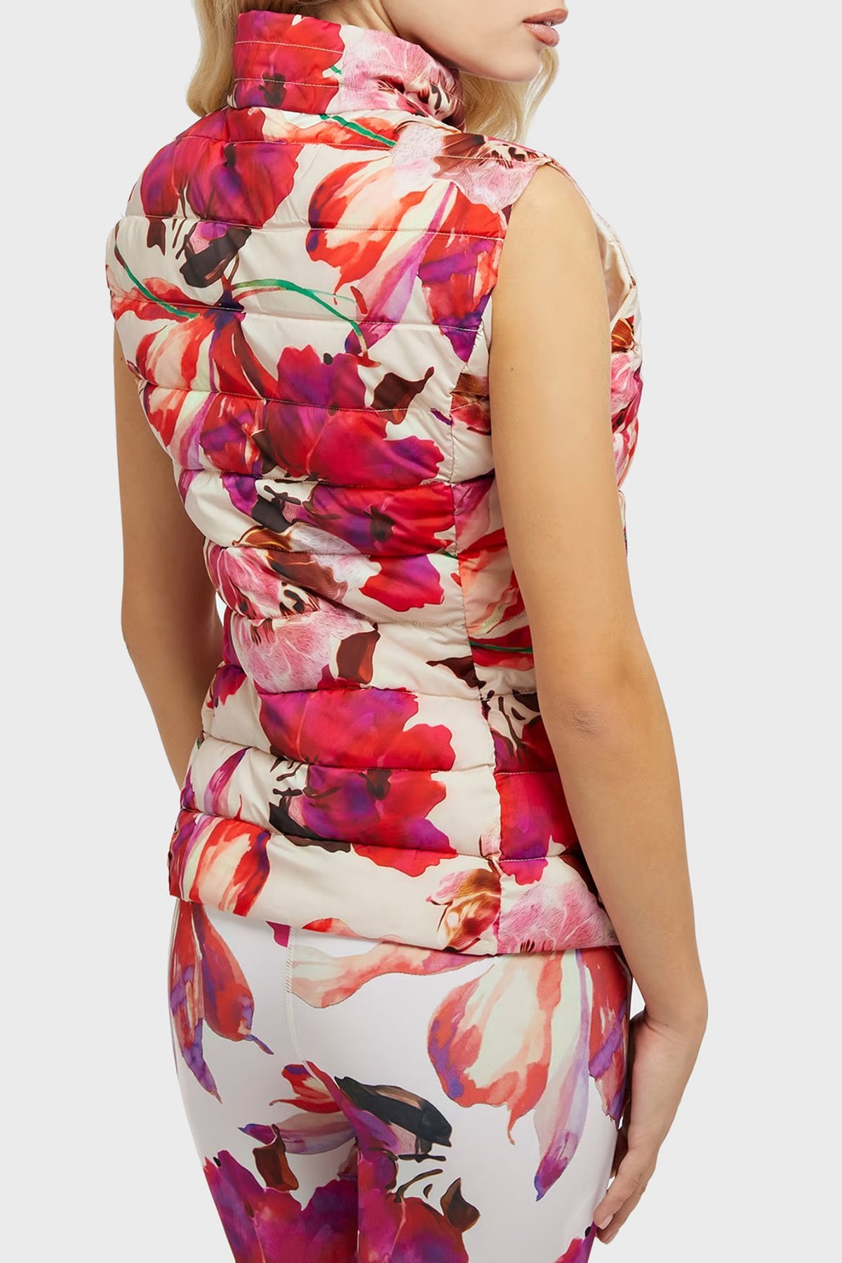Corine Tamamı Çiçek Desenli Dik Yaka Slim Fit Kapitone Bayan Yelek V3RL07WF3X0 P15T BEJ