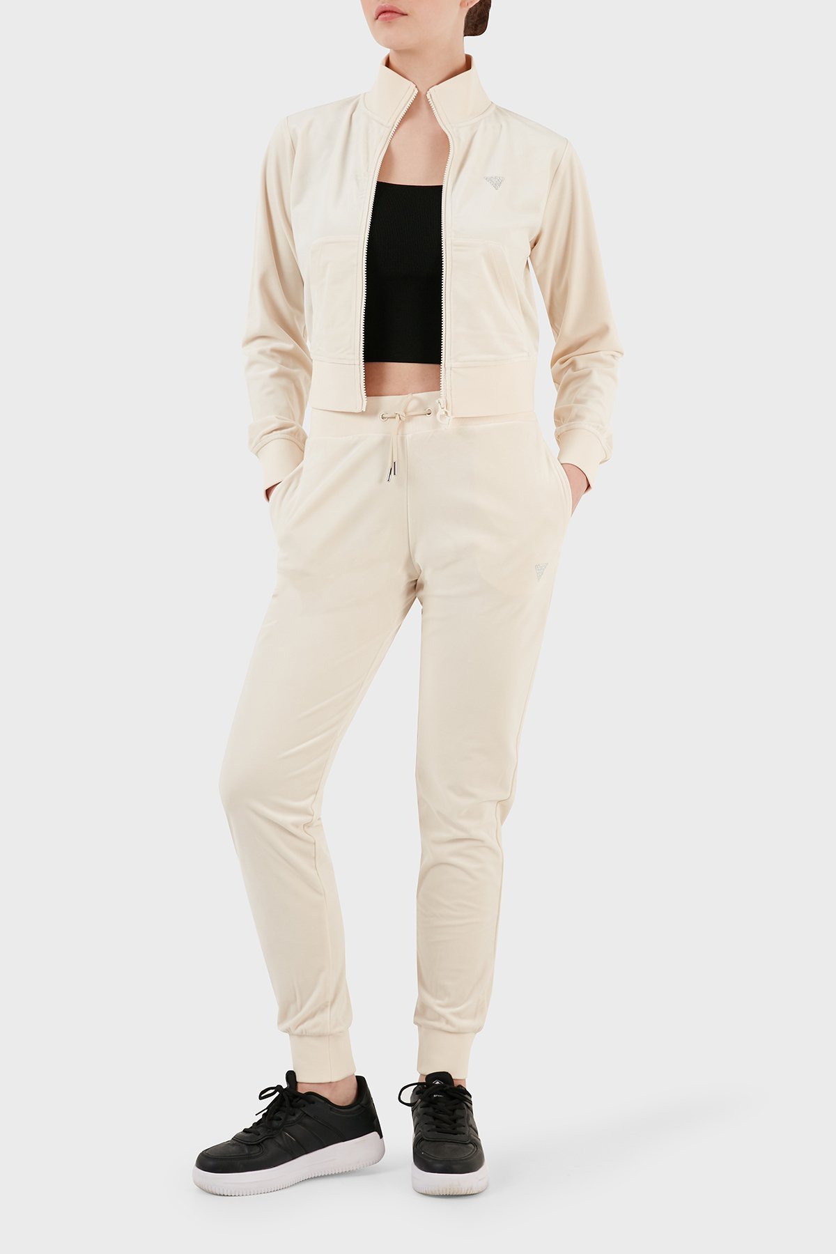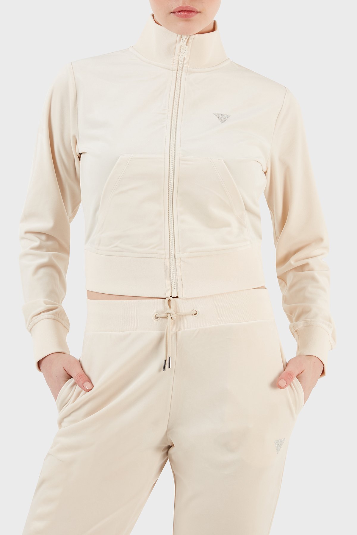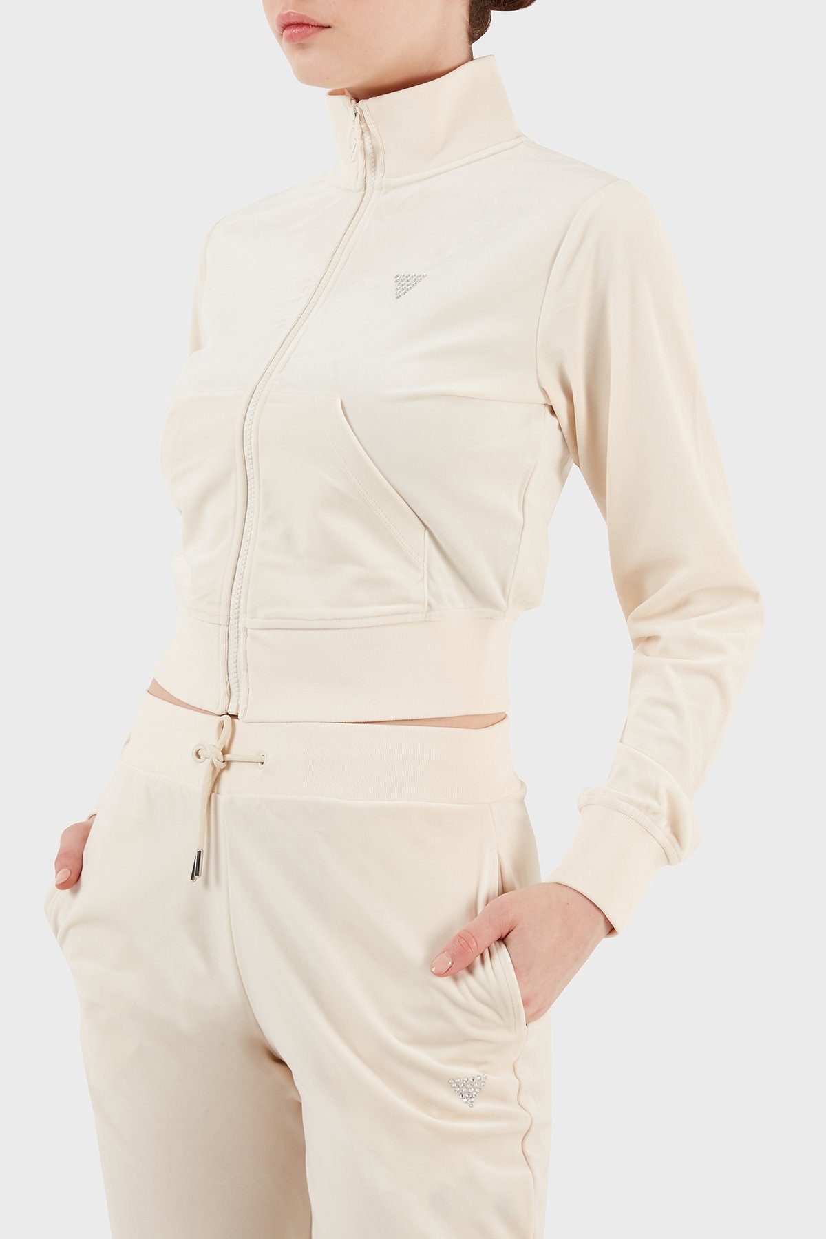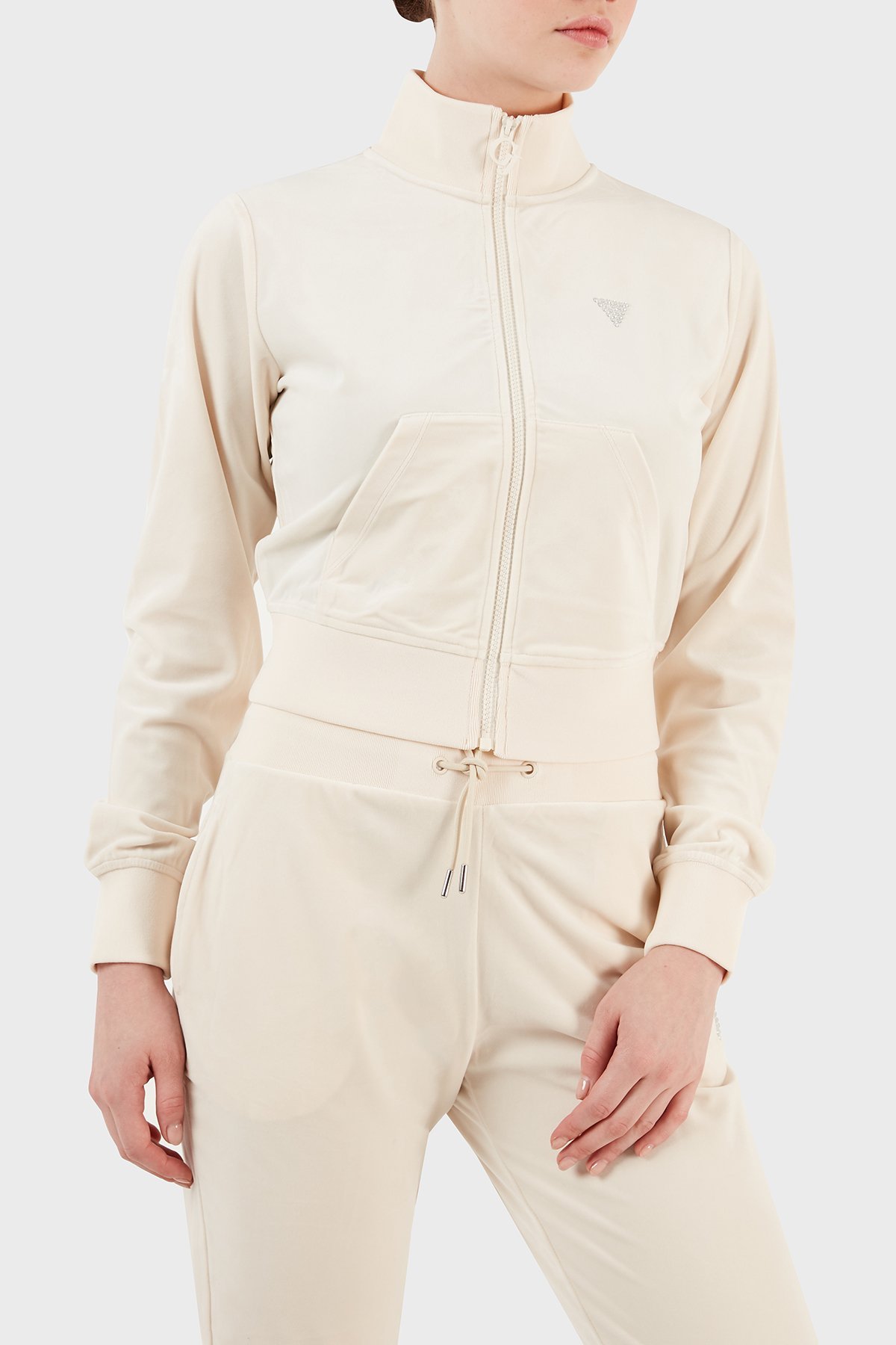 Couture Regular Fit Dik Yaka Kadife Bayan Sweat V3BQ22KBXI2 G1F7 KREM