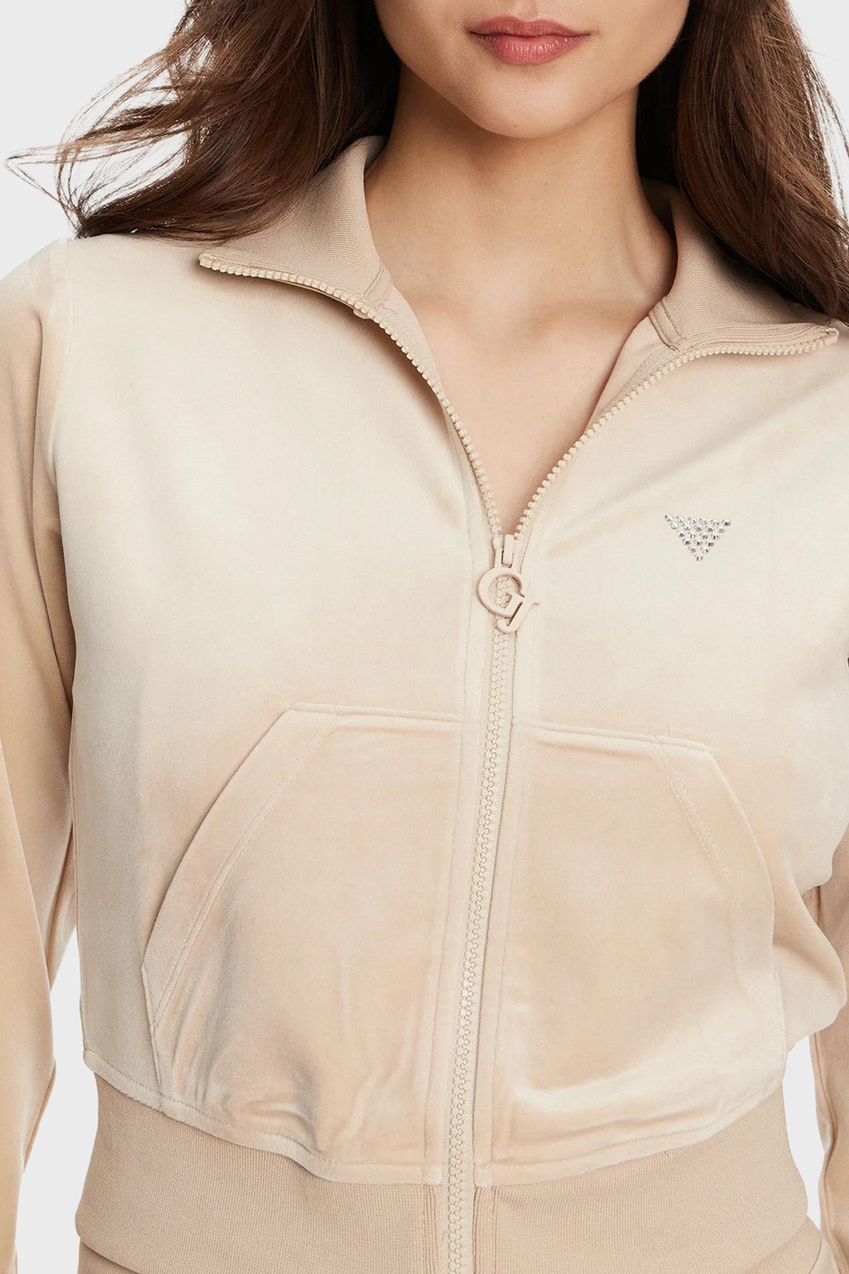 Couture Taşlı Regular Fit Dik Yaka Kadife Crop V3BQ22K0232 Bayan Sweat V3BQ22 K0232 A90F BEJ