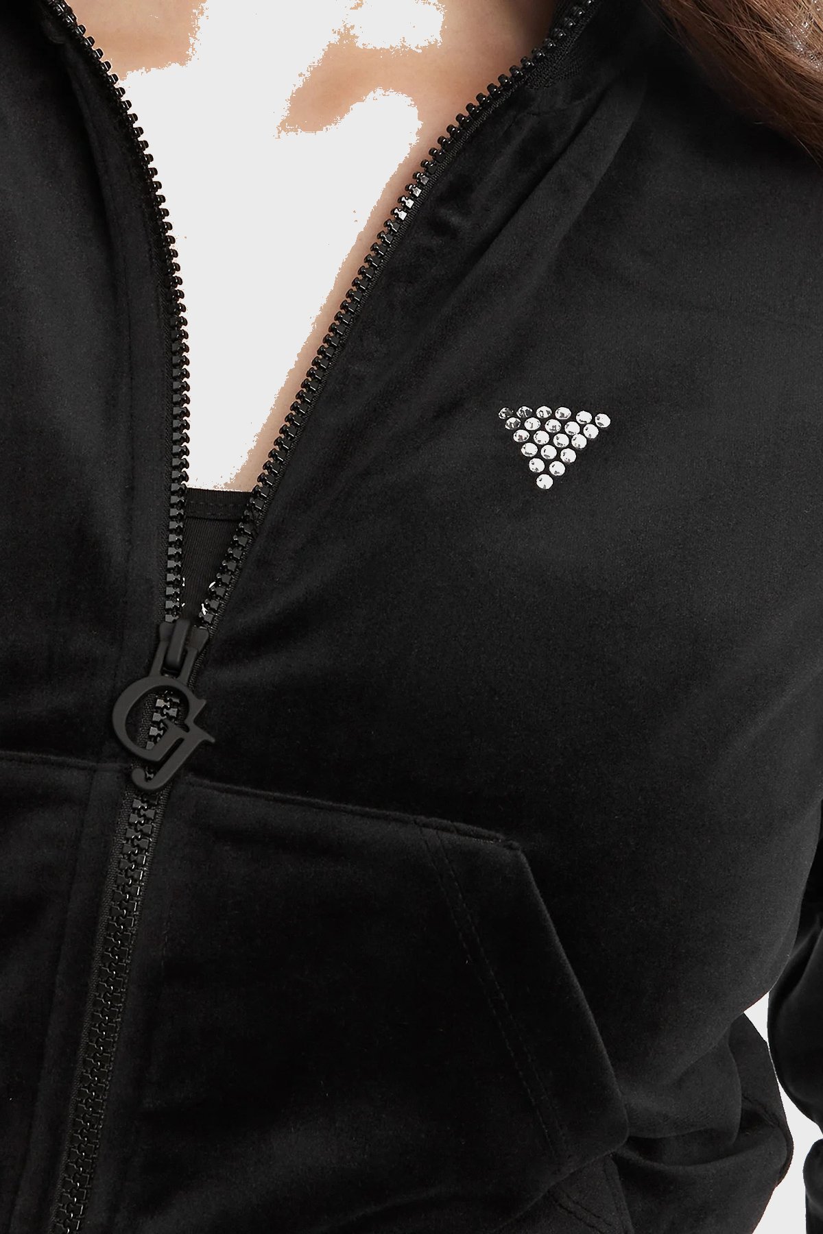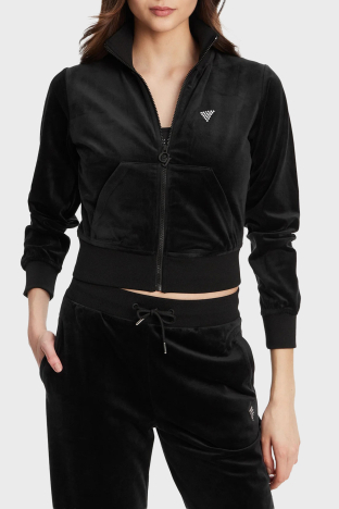 Couture Taşlı Regular Fit Dik Yaka Kadife Crop V3BQ22K0232 Bayan Sweat V3BQ22 K0232 JBLK SİYAH