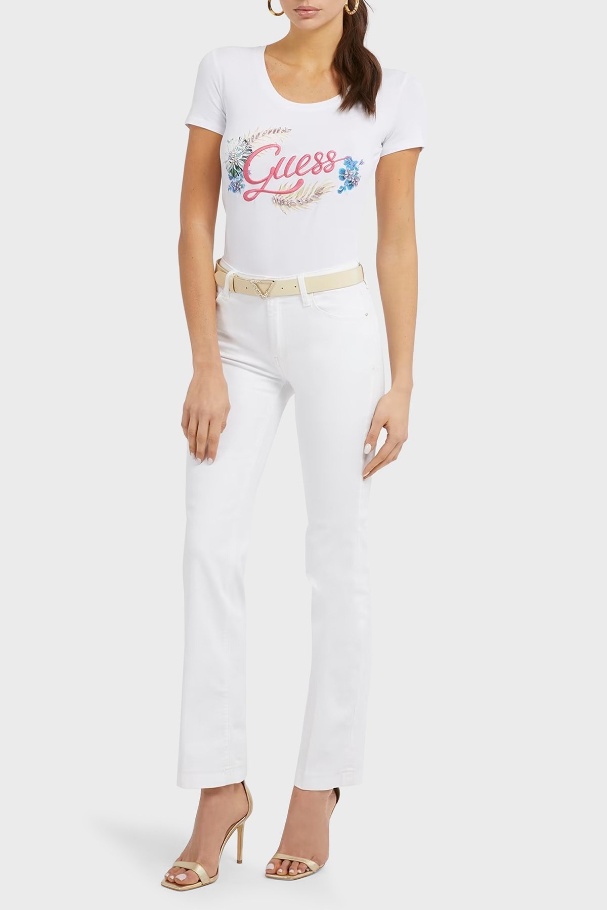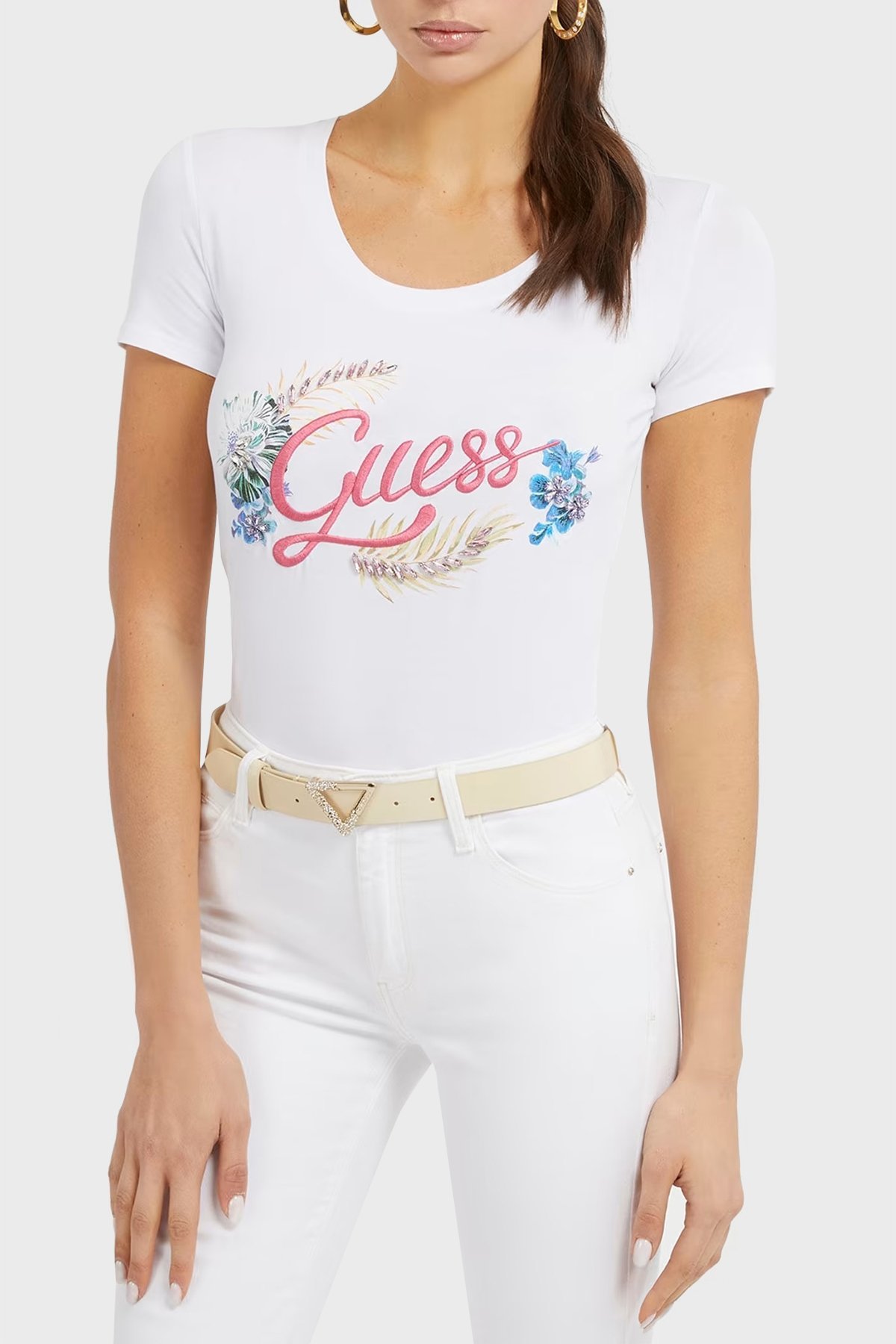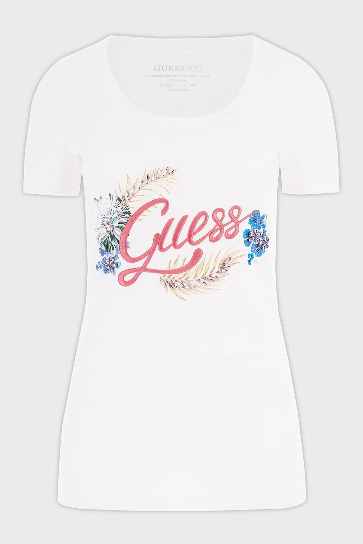 Embellish Pamuklu Nakışlı Logolu Slim Fit Bisiklet Yaka Bayan T Shirt W3GI40J1314 G011 BEYAZ