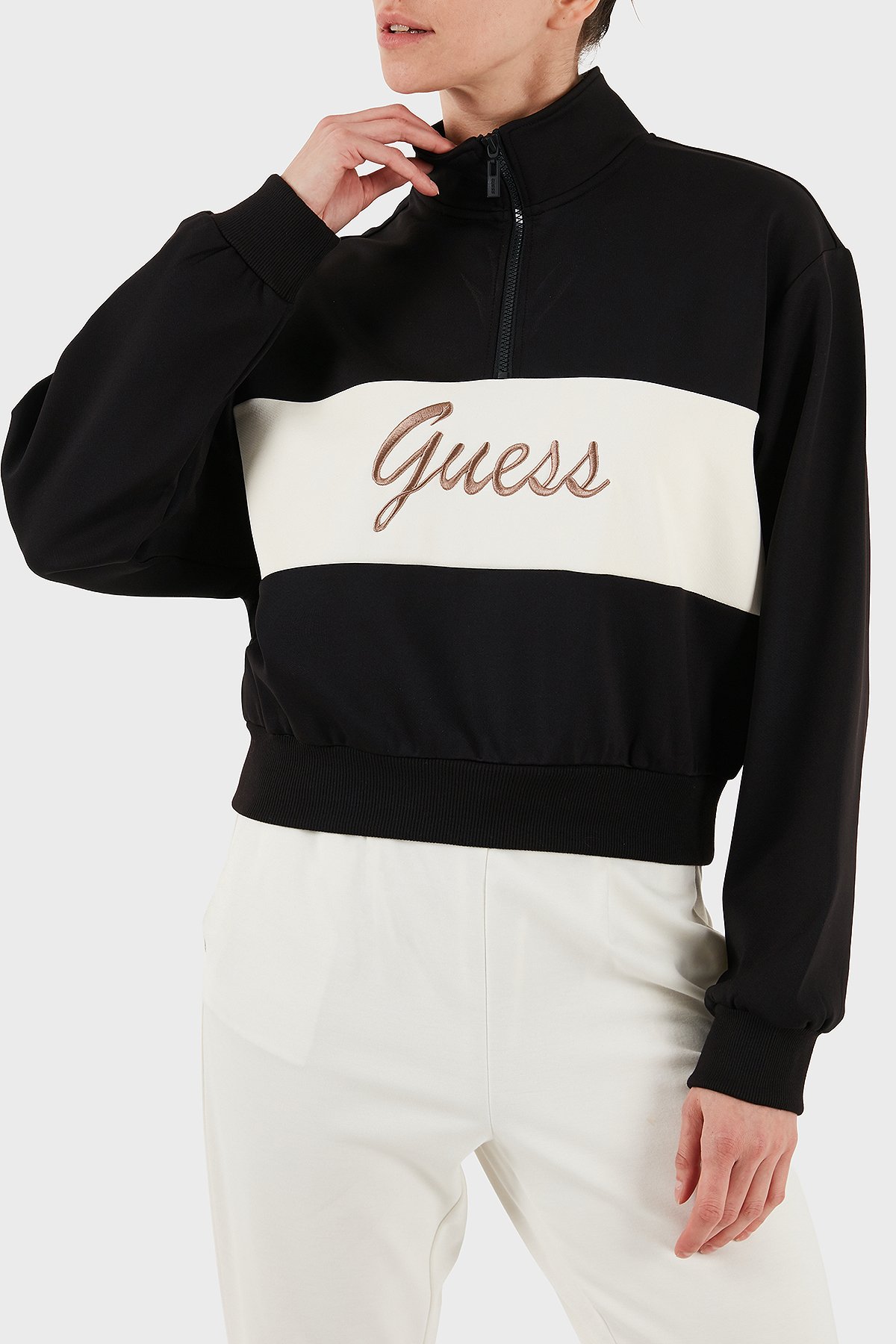 Fabia Streç Logolu Regular Fit Yarım Fermuarlı Dik Yaka Kısa V5BQ00KCX22 Bayan Sweat V5BQ00 KCX22 JBLK SİYAH