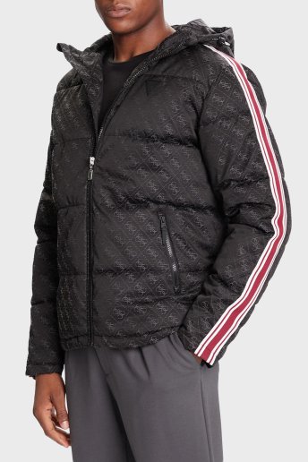Fusco 4G Logolu Şerit Detaylı Regular Fit Kapüşonlu Şişme Z5BL02WFIQ2 Erkek Mont Z5BL02 WFIQ2 FJ9Y SİYAH
