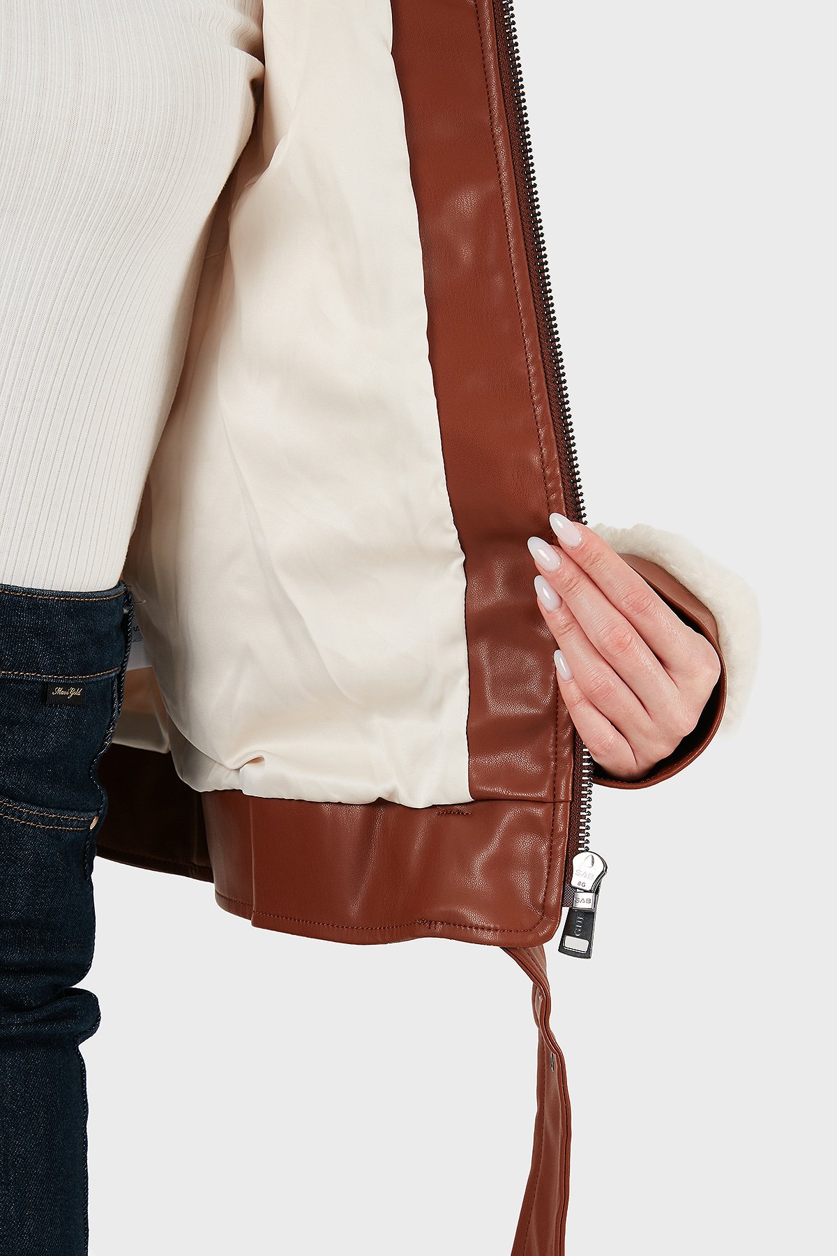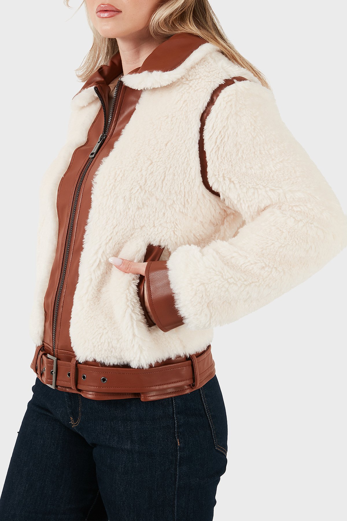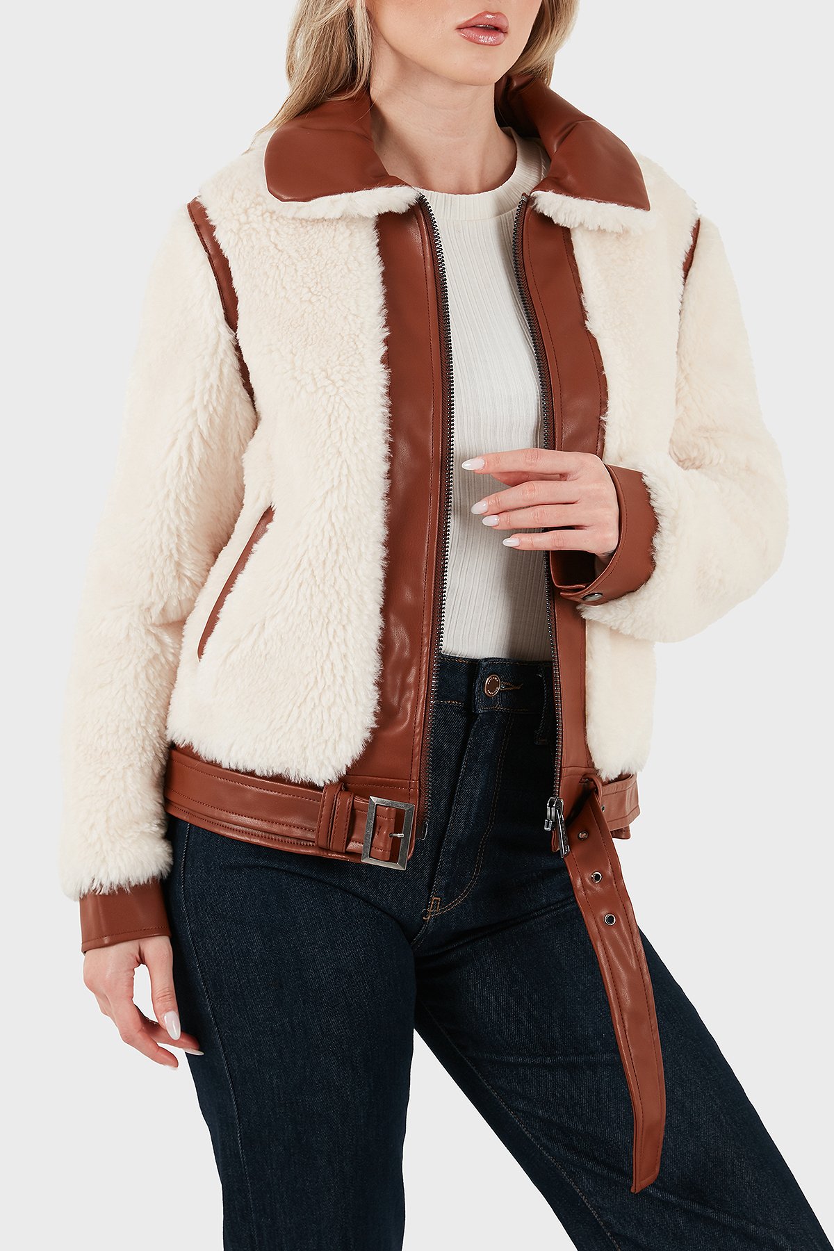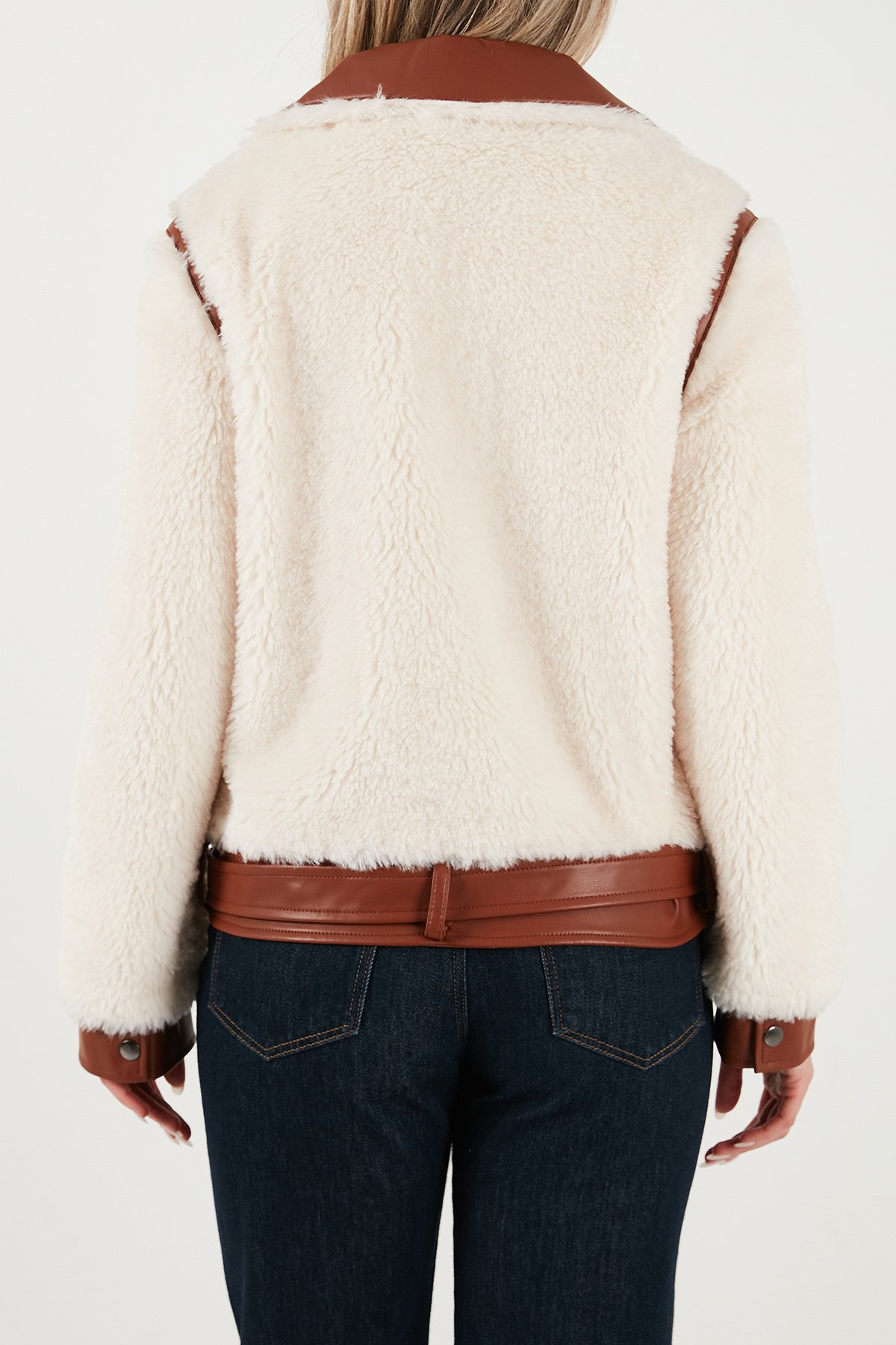 Giordana Regular Fit Ceket Yaka Kemer Detaylı Suni Kürk W5BL71W3840F0D9 Bayan Mont W5BL71 W3840 F0D9 EKRU