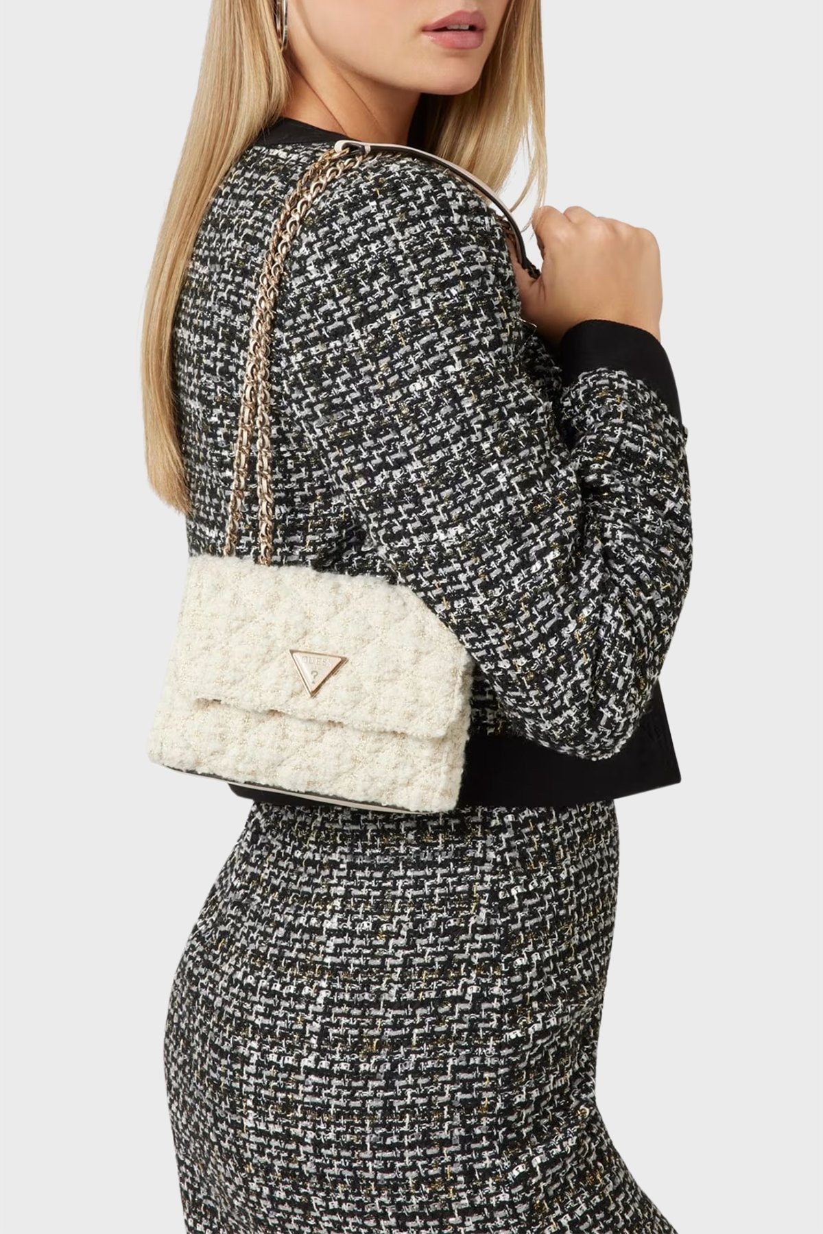 Giully Yün Karışımlı Ayarlanabilir Zincir Askılı Mini HWAT8748740 Bayan Çanta HWAT87 48740 IVO EKRU