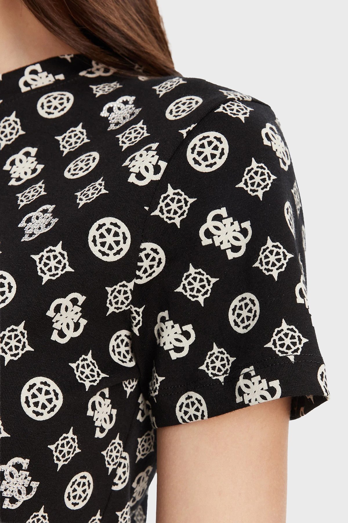 Gloria 4G Logo Baskılı Pamuklu Regular Fit Bisiklet Yaka V5YI04I3Z14 Bayan T Shirt V5YI04 I3Z14 PJ1Q SİYAH