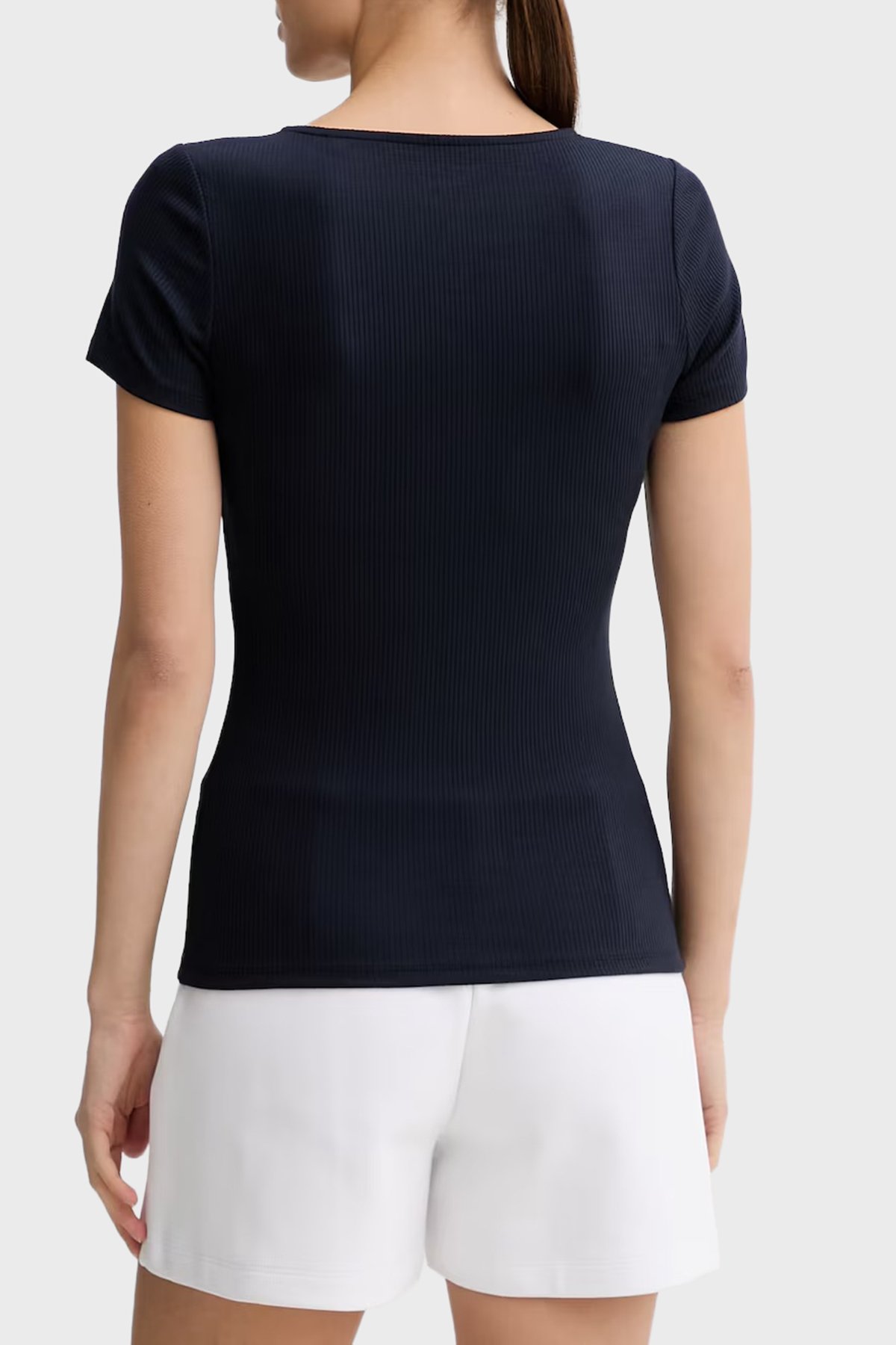 xns Slim Fit Logolu Düğmeli Yuvarlak Yaka W6GP01K2658 Bayan Top W6GP01 K2658 G7V2 SİYAH