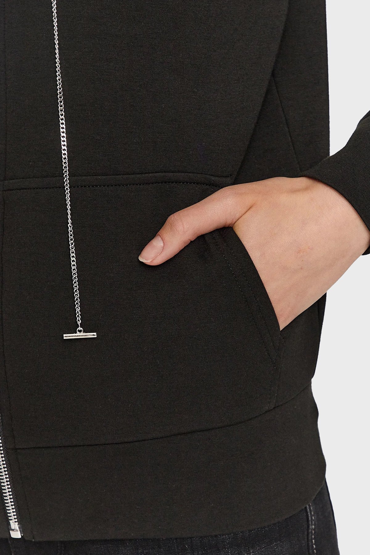 Hoody Regular Fit Fermuarlı Zincirli Kapüşonlu Cepli Bayan Sweat W3YQ15KB932 JBLK SİYAH