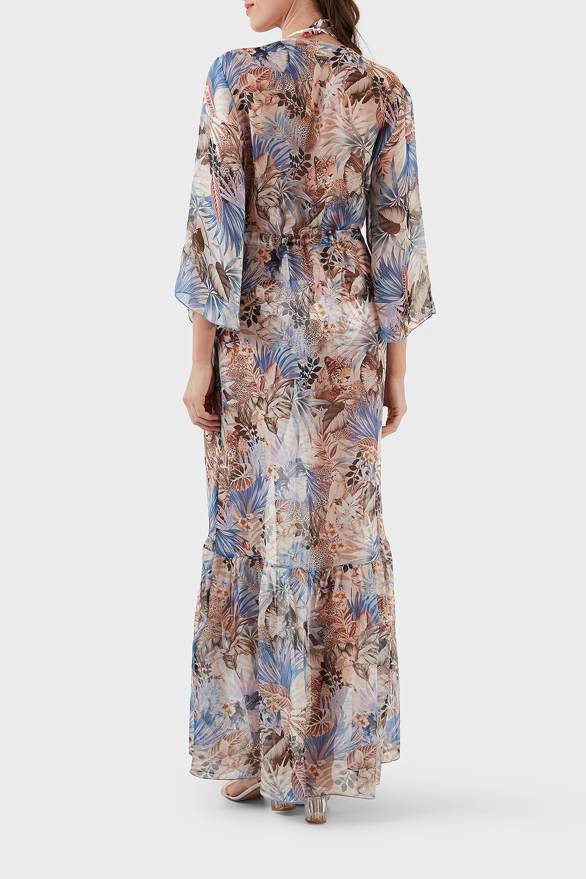 İpek Karışımlı Desenli Bağlama Detaylı Kimono Uzun Bayan Pareo E3GK09WE550 P7HB MAVİ