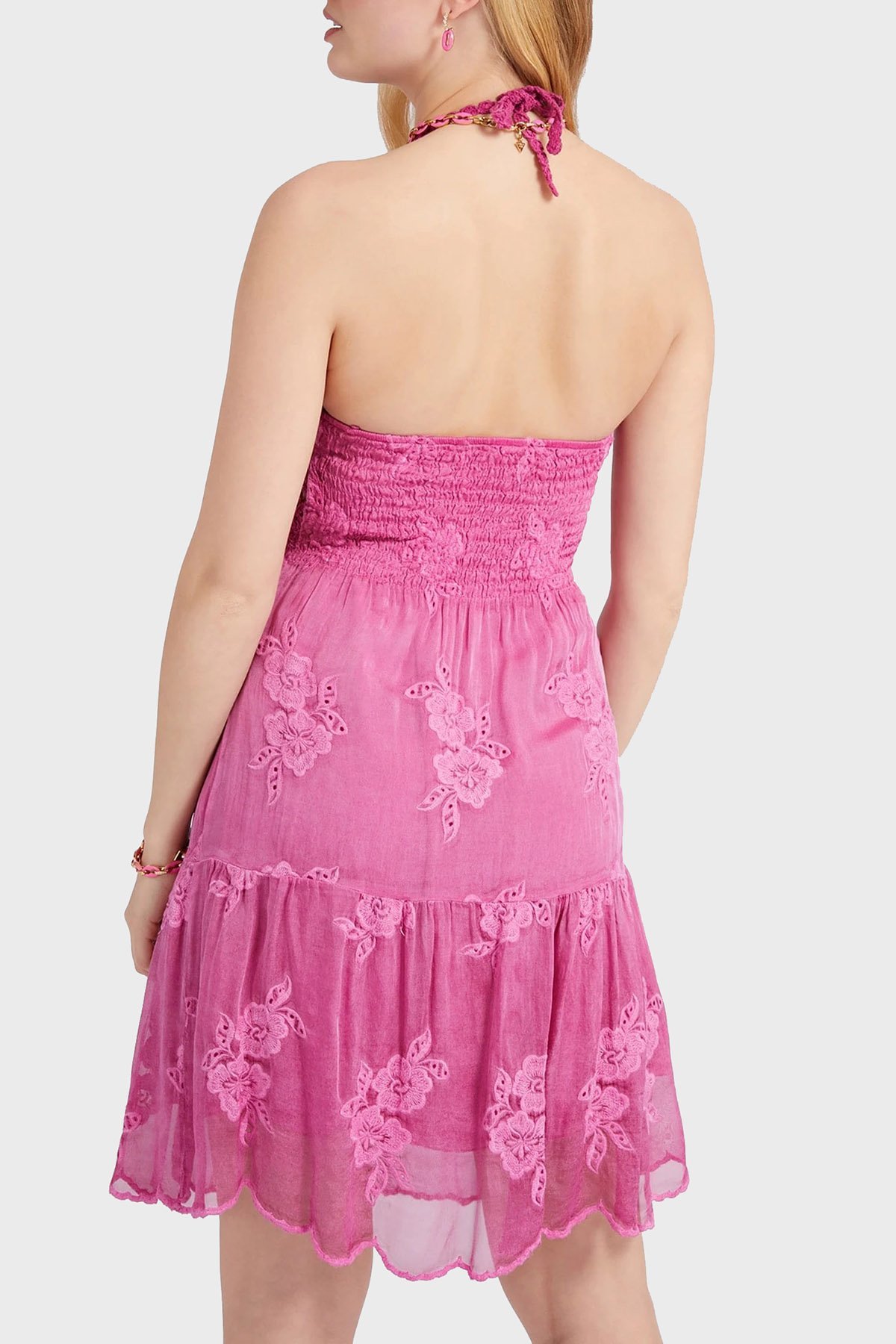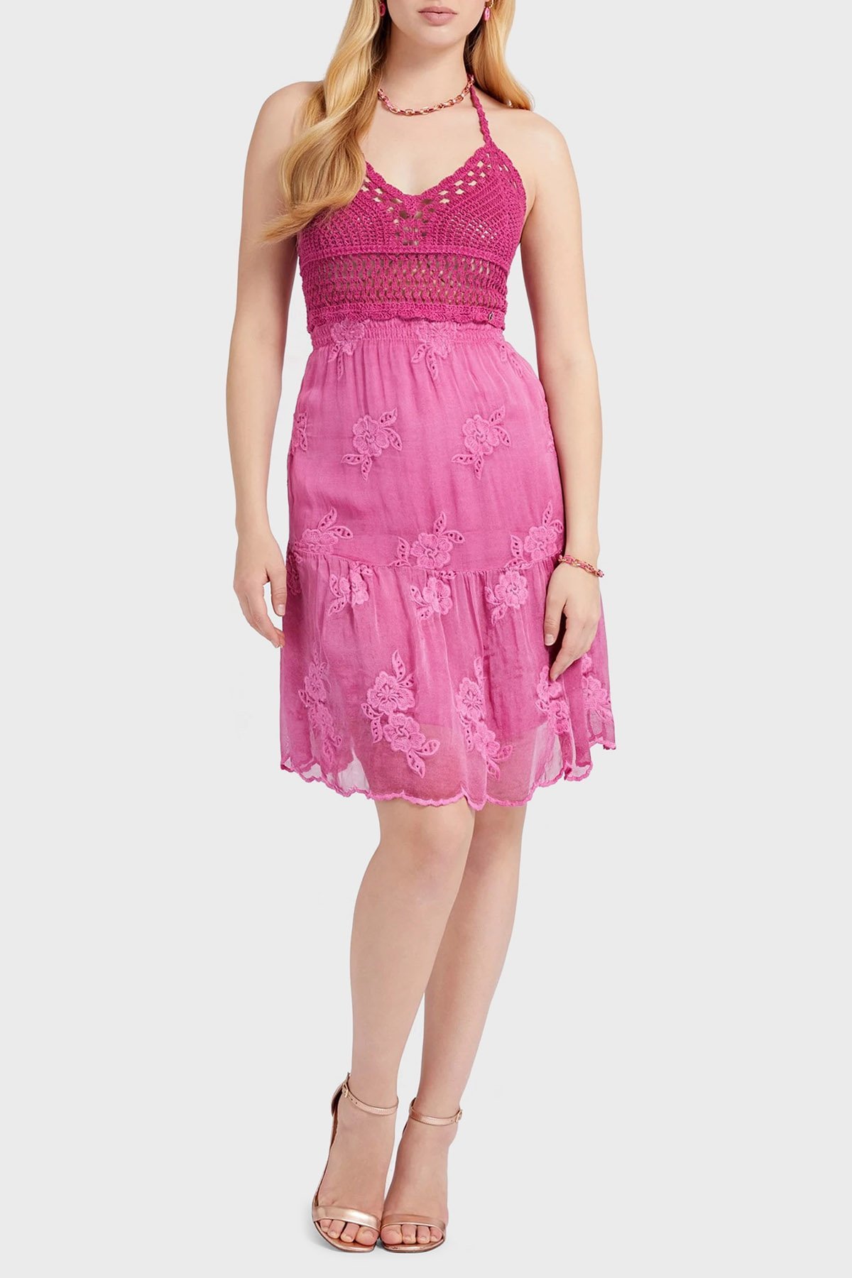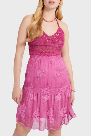 İpek Karışımlı Örgü Detaylı Boyundan Bağlamalı Gipeli Bayan Elbise W2GK60WEKE0 G4A2 FUŞYA