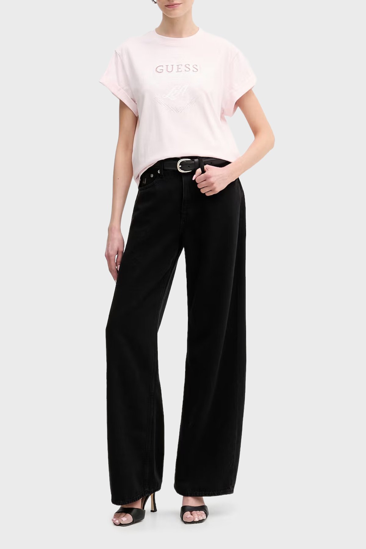 Jersey Pamuklu Taş Detaylı Regular Fit Bisiklet Yaka W6RI30I3Z14 Bayan T Shirt W6RI30 I3Z14 A627 PEMBE