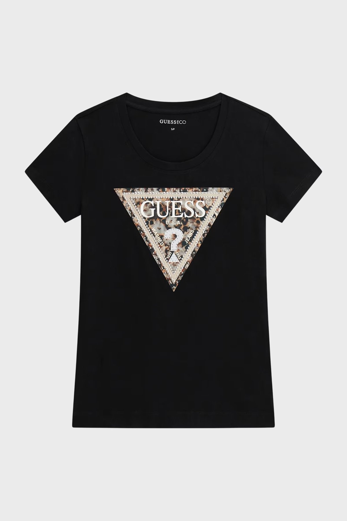 Jersey Pamuklu Üçgen Logolu Slim Fit Bisiklet Yaka W6RI32J1314 Bayan T Shirt W6RI32 J1314 JBLK SİYAH