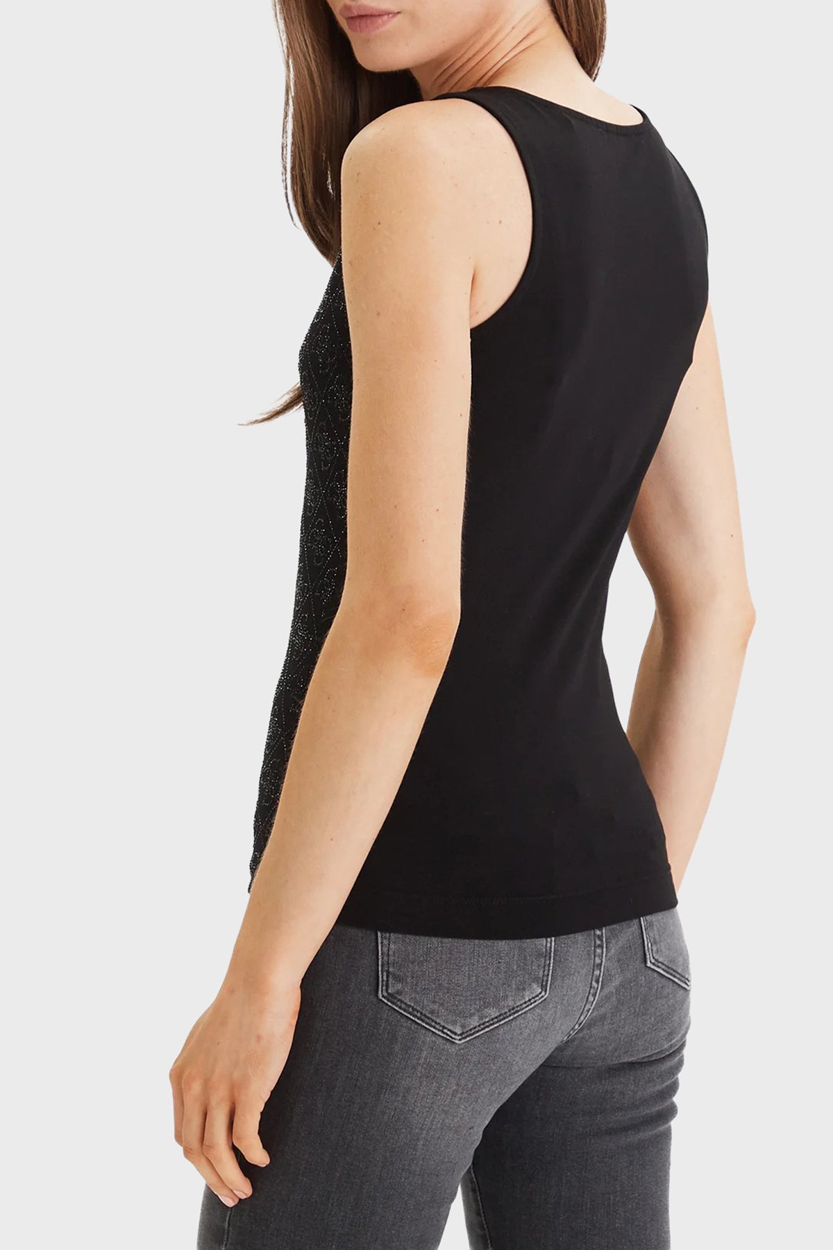 Jersey Taşlı Logolu Pamuklu Regular Fit Yuvarlak Yaka W6GP10K2932 Bayan Top W6GP10 K2932 JBLK SİYAH