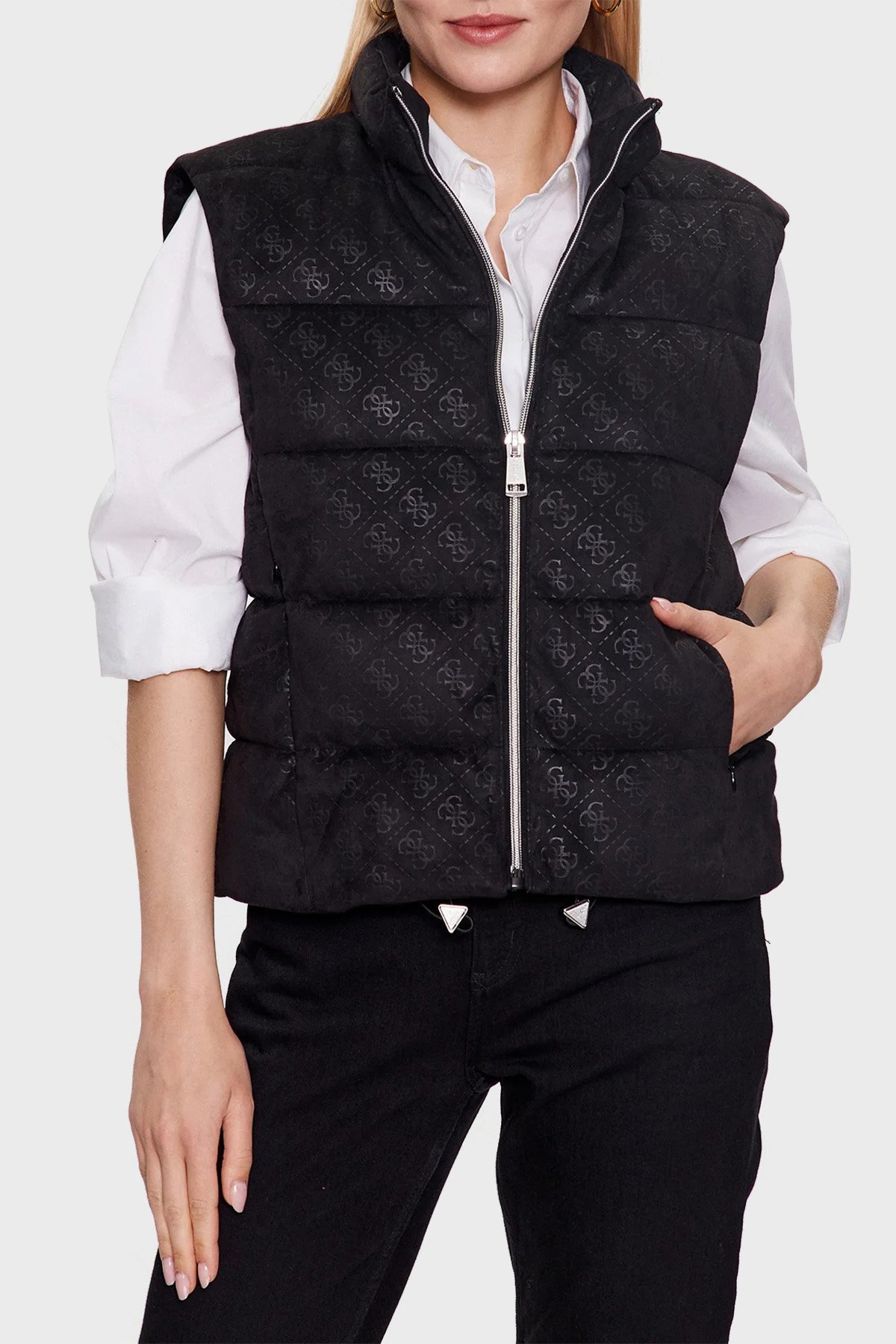 Jole Logolu Slim Fit Dik Yaka Yapay Süet Şişme Bayan Yelek W3YN38WFIY0 JBLK SİYAH