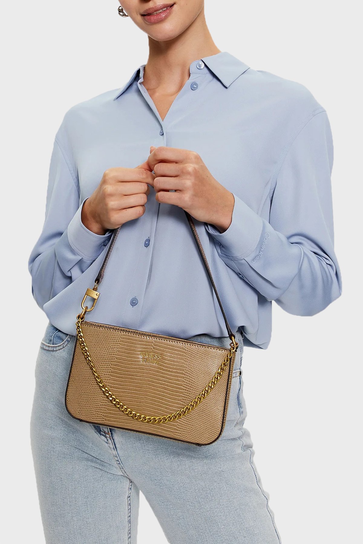 Katey Logolu Timsah Desenli Zincirli Çapraz Askılı Mini Bayan Çanta HWKA7870720 DRT KAHVE