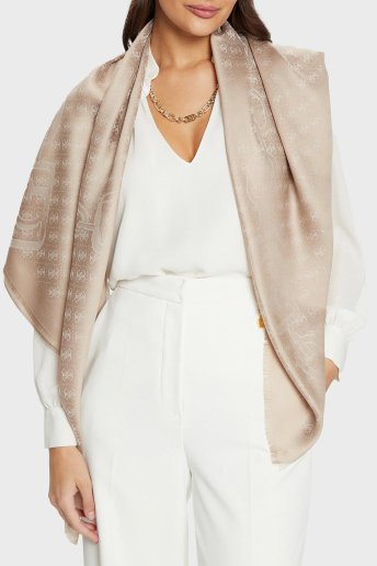 Kefiah Jakarlı Logo Baskılı Modal Karışımlı 130 x 130 cm AW5191POL03 Bayan Şal AW5191 POL03 SAN BEJ