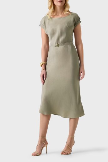 Kemerli Bisiklet Yaka Midi Boy W6GK50W1950 Kadın Elbise W6GK50 W1950 G8CJ HAKİ