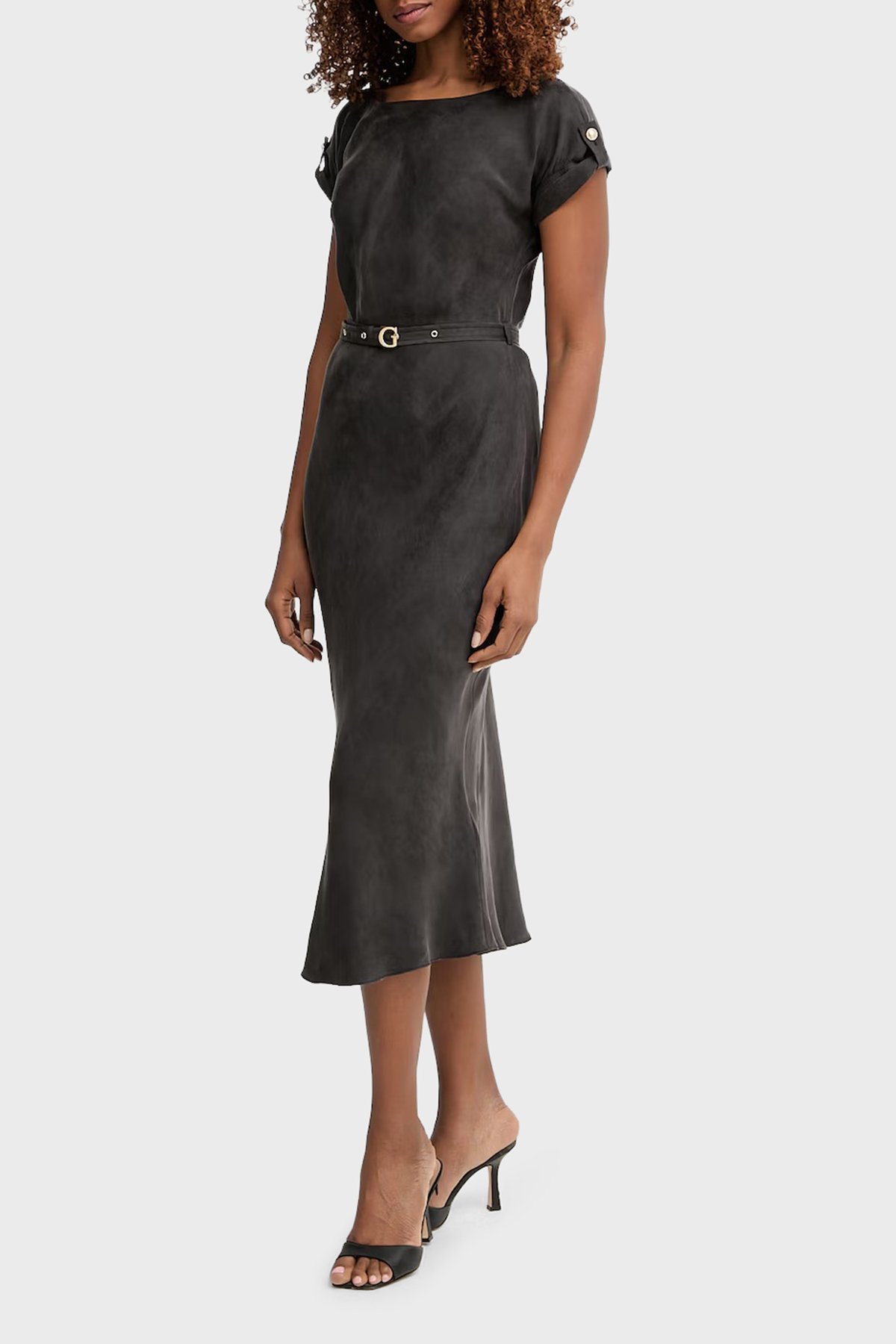 Kemerli Bisiklet Yaka Midi Boy W6GK50W1950 Kadın Elbise W6GK50 W1950 JBLK SİYAH