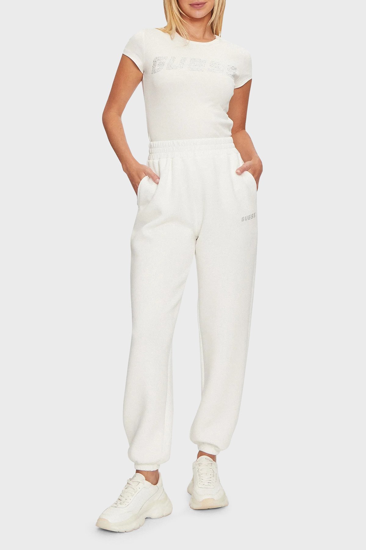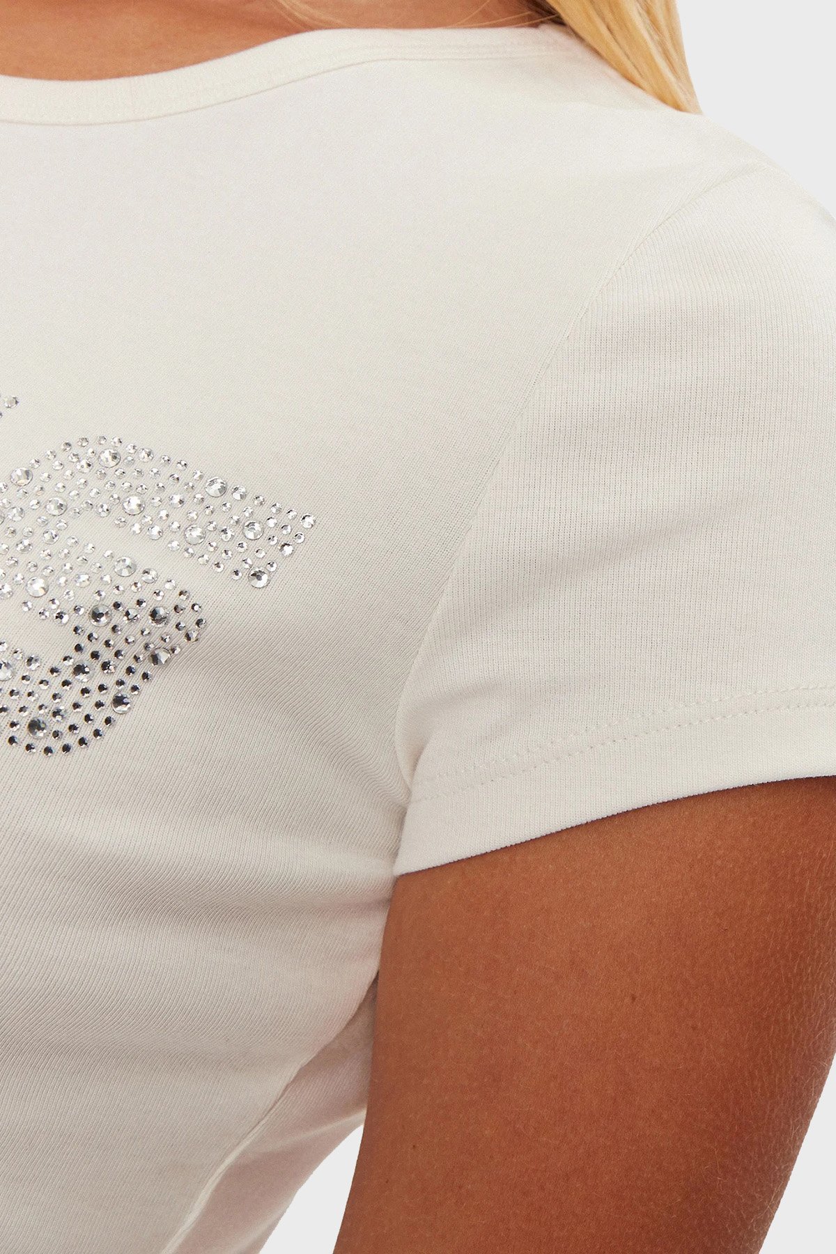 Kiara Streç Pamuklu Slim Fit Taşlı Logolu V4BI16KCIV1 Bayan T Shirt V4BI16 KCIV1 G6K5 EKRU