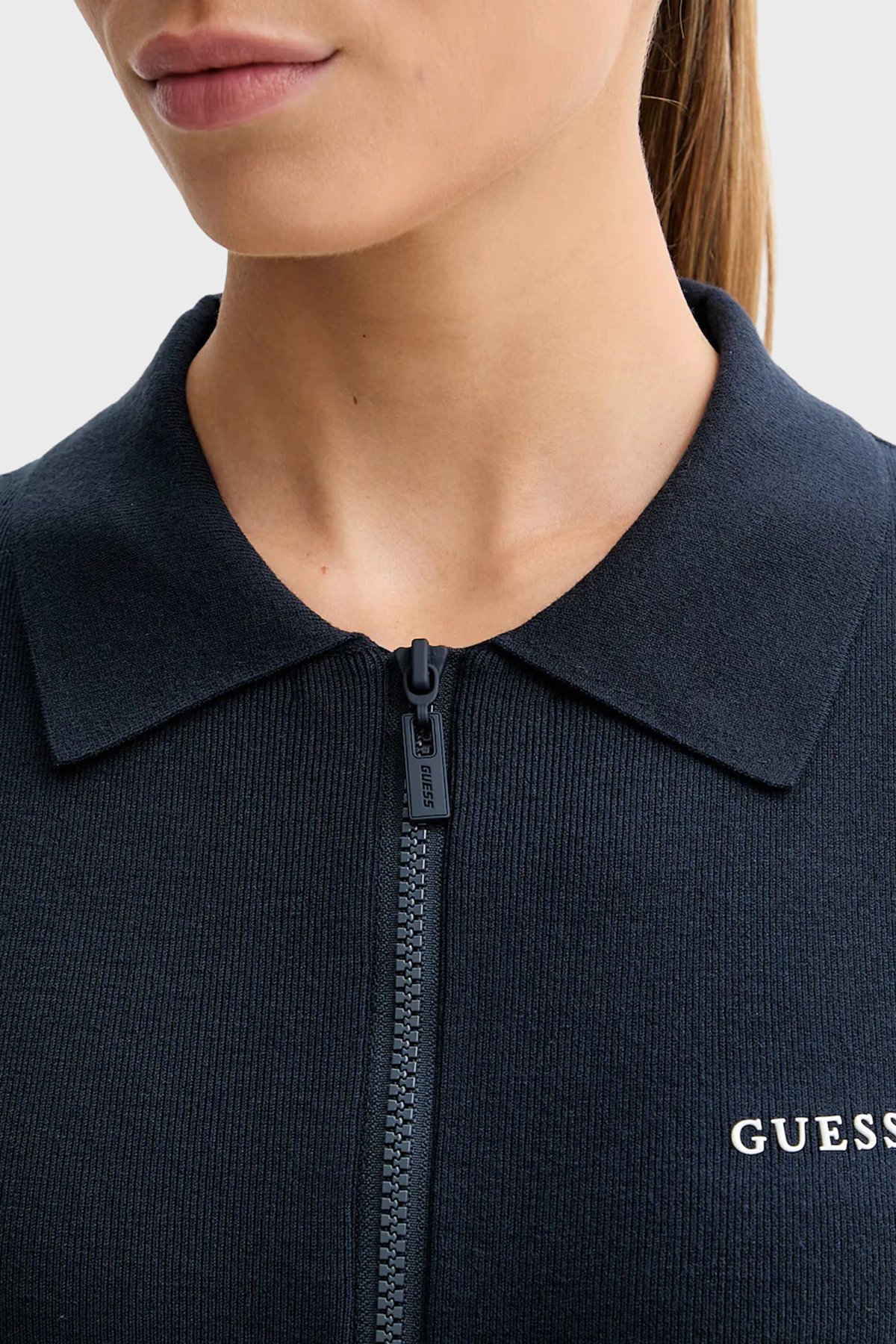 Laurene Slim Fit Kemer Detaylı Fermuarlı Polo Yaka Triko V6RK08Z4642 Bayan Elbise V6RK08 Z4642 G7R1 LACİVERT
