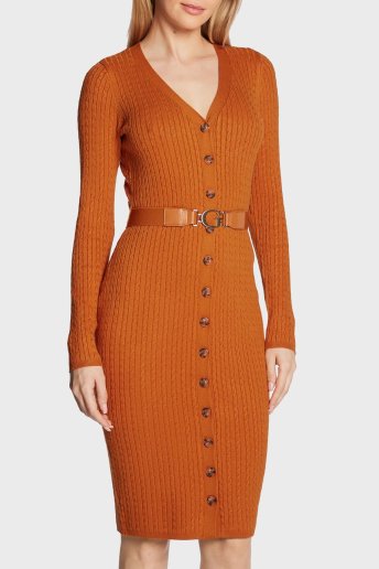 Lena V Yaka Önden Düğmeli Kemerli Örgülü Triko Bayan Elbise W2BK54Z2YJ2 A30D TARÇİN