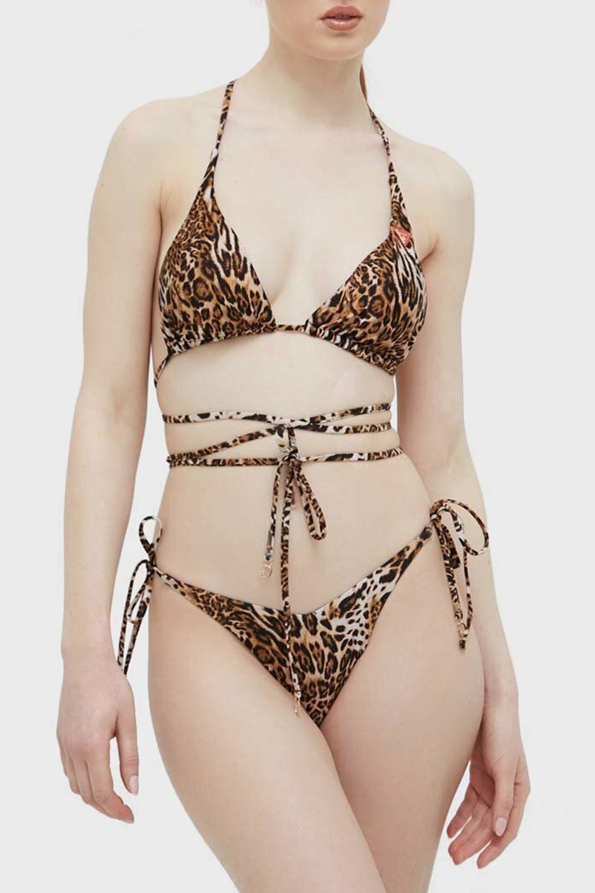 Leopar Desenli Yanlardan Bağlamalı V String Bayan Bikini Altı E3GO03MC04R P122 KAHVE