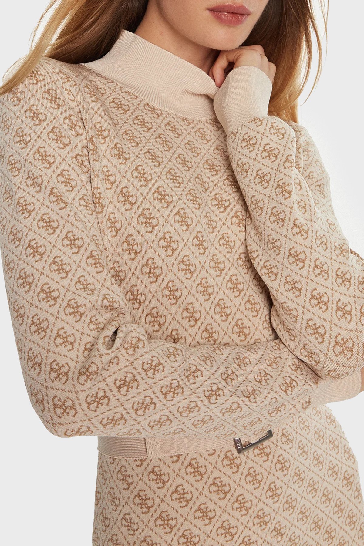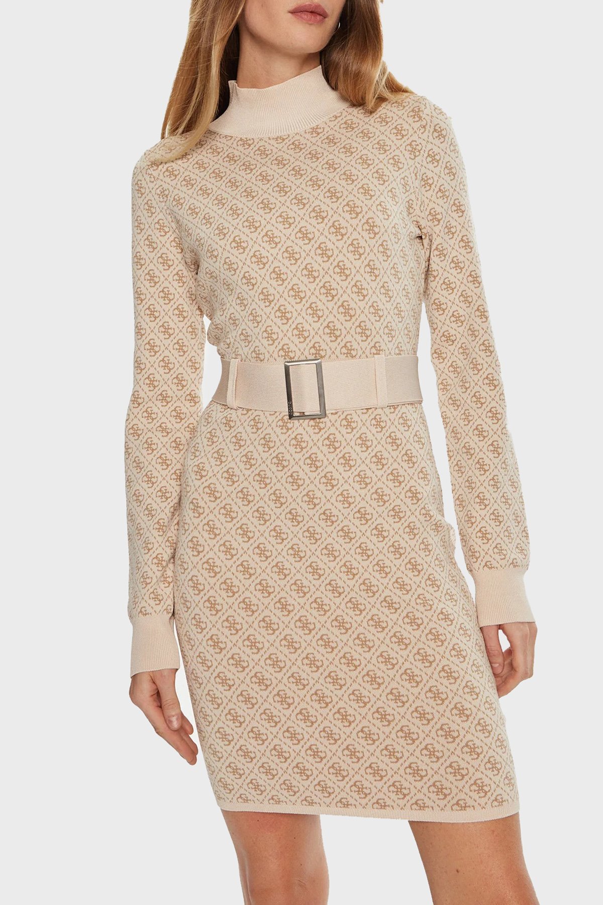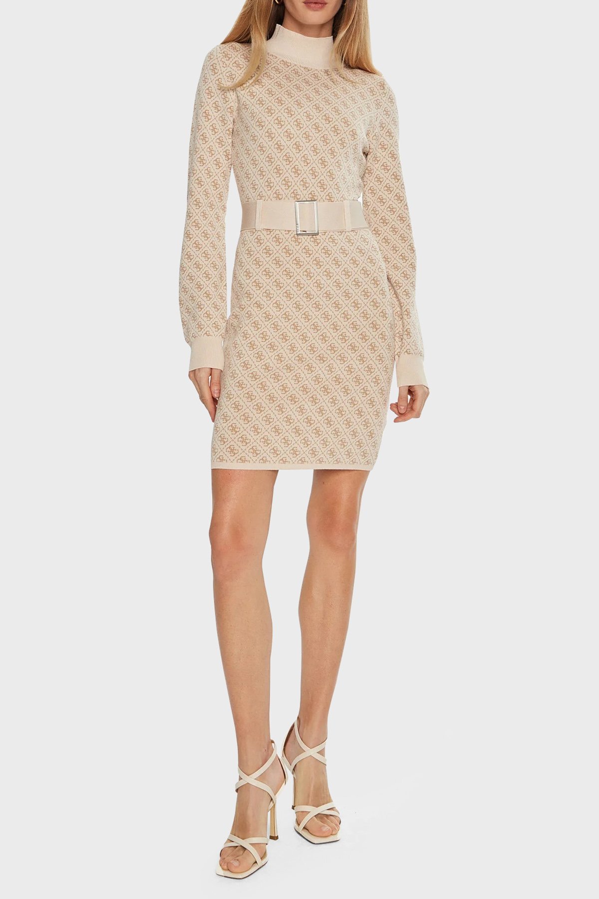 Lise 4G Logolu Regular Fit Kemerli Mini Triko W4BK43Z37K0 Bayan Elbise W4BK43 Z37K0 FN3J KREM