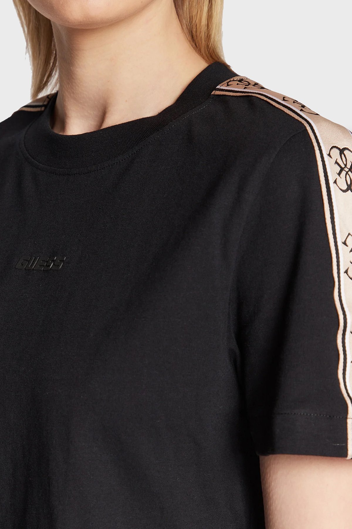 Logo Bantlı % 100 Pamuk Bisiklet Yaka Relaxed Fit Britney Bayan T Shirt V3RI08I3Z14 JBLK SİYAH