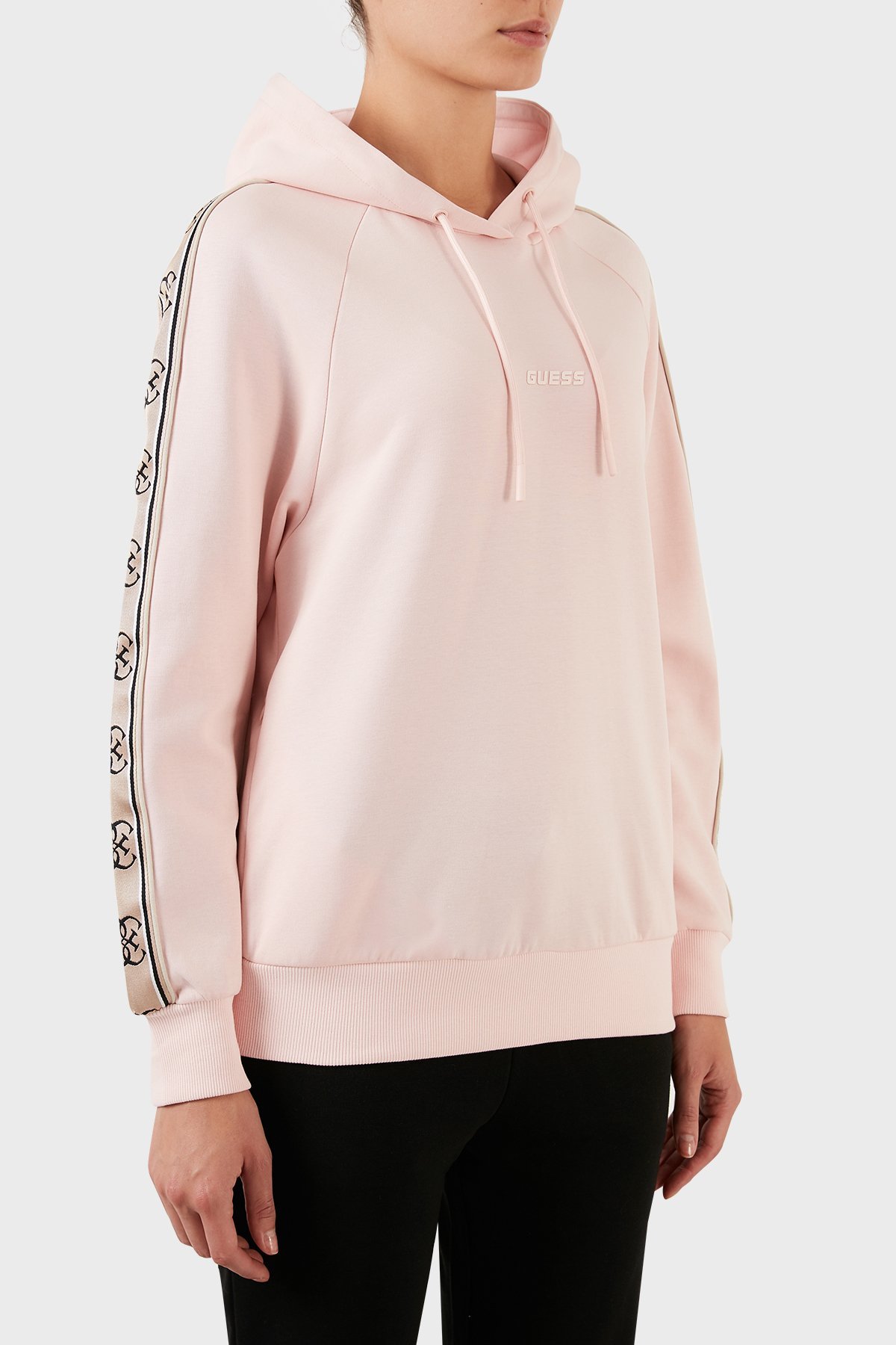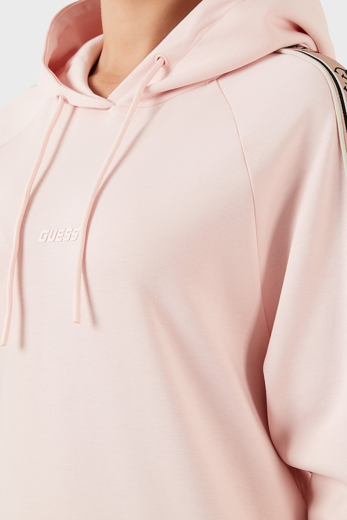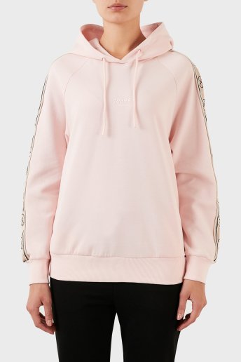 Logo Şeritli Kapüşonlu Pamuklu Regular Fit Britney Bayan Sweat V2YQ15KA3P1 G6R4 PUDRA